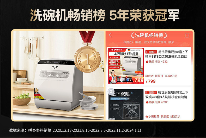 Deshikuchu 2025 식기 세척기 Q8Max 완전 자동 홈 스마트 데스크탑 임베디드 8인 세트 대용량스토어 가기