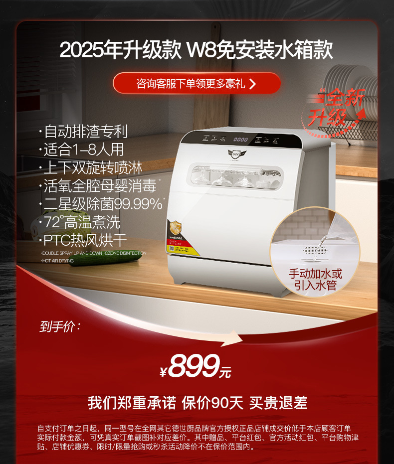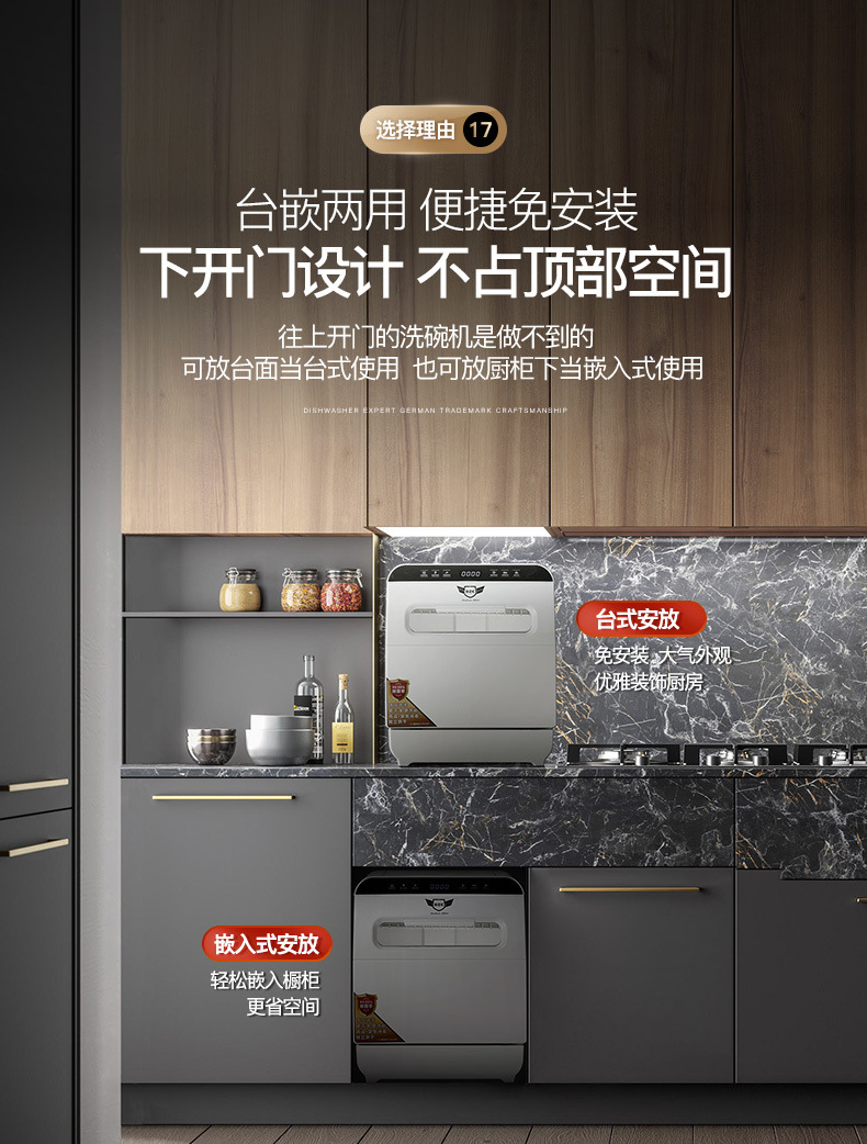 8인용 DeShi 주방 설치가 필요 없는 식기세척기, 스마트 전자동 가정용 소독 및 열풍 건조스토어 가기