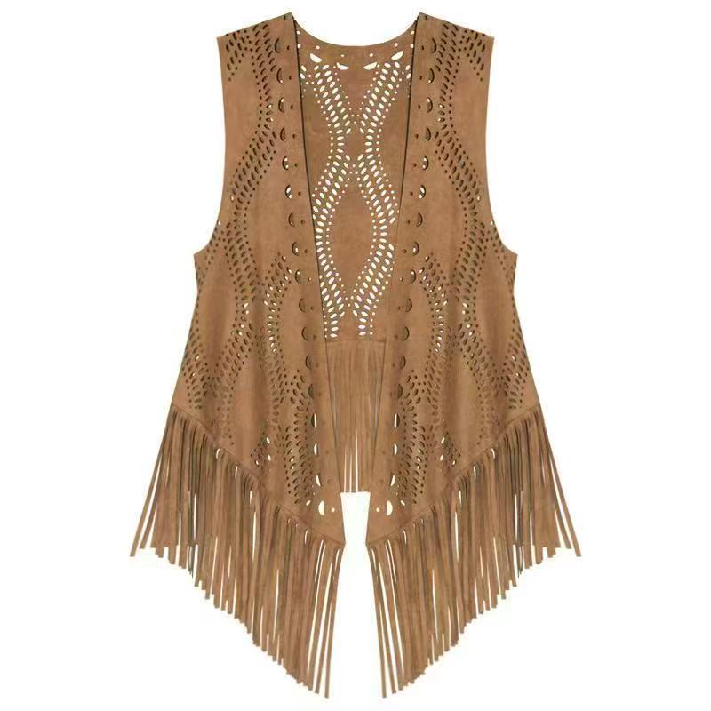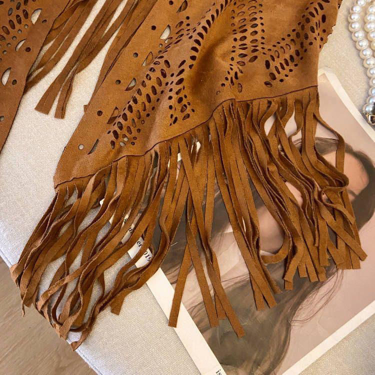 국경 간 대외 무역 여름 새로운 스타일 스웨이드 술 조끼 여성의 얇은 복고풍 패션 양복 조끼 여행 외부 태슬스토어 가기