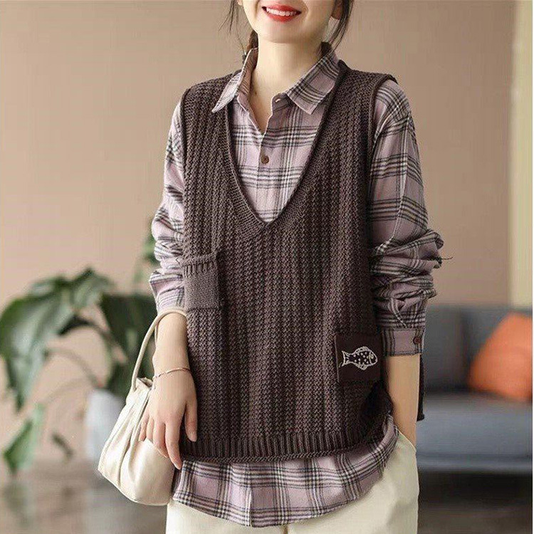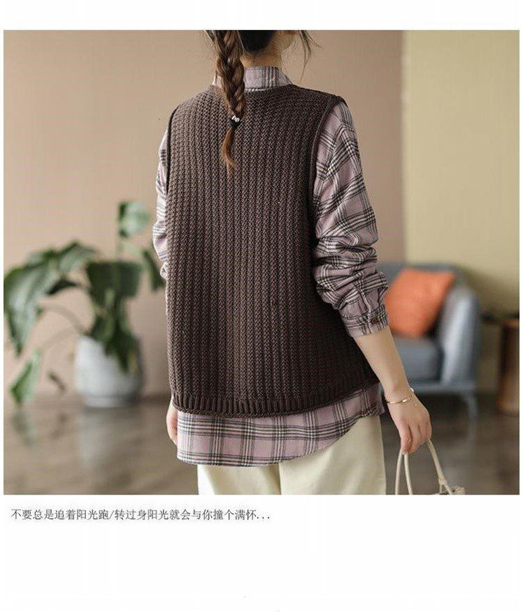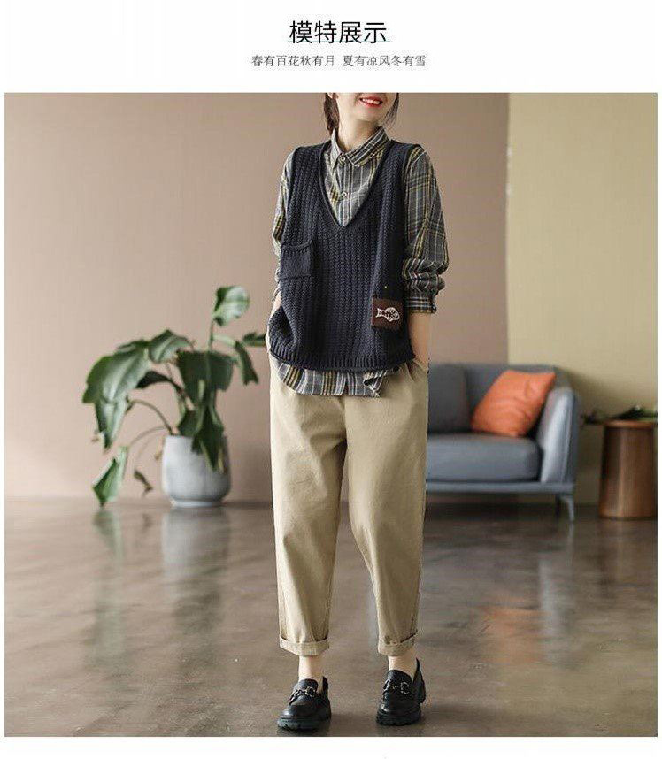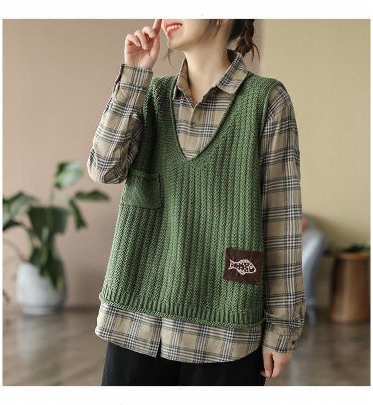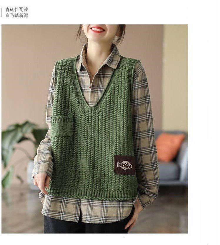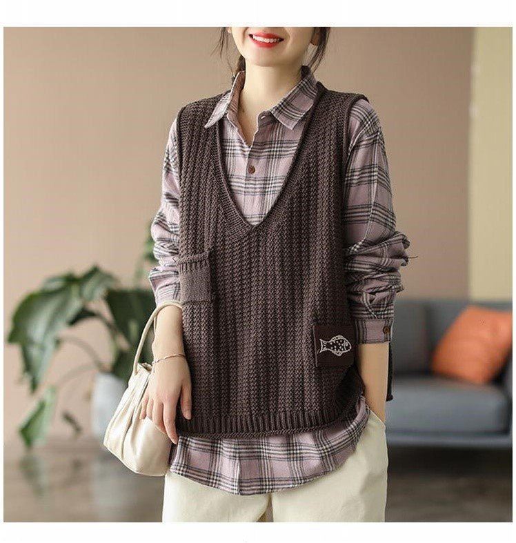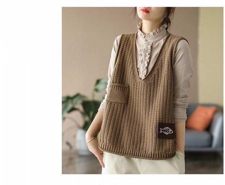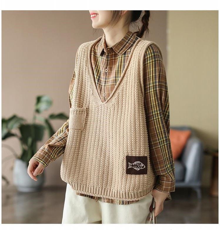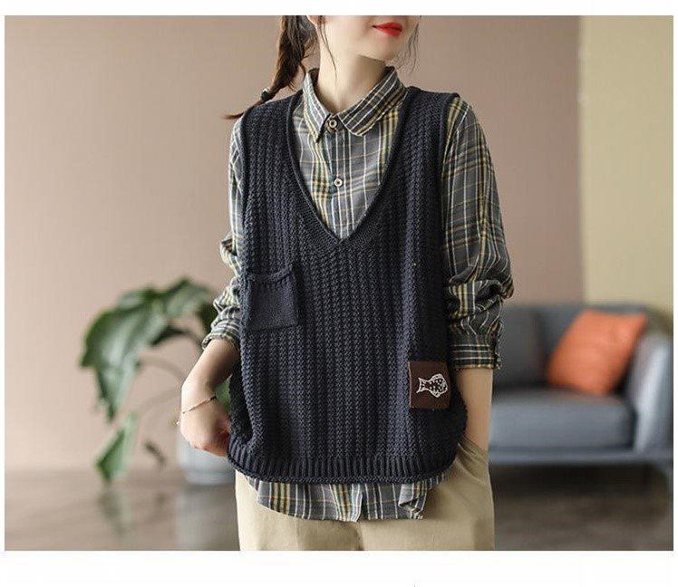 봄 여름 새로운 스타일 v 넥 느슨한 캐주얼 레이어드 스웨터 조끼 레트로 라벨 니트 조끼 여성 겉옷스토어 가기