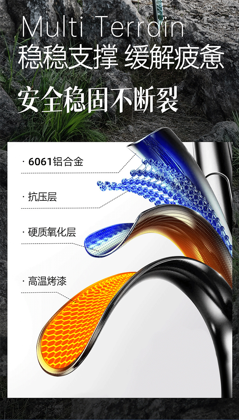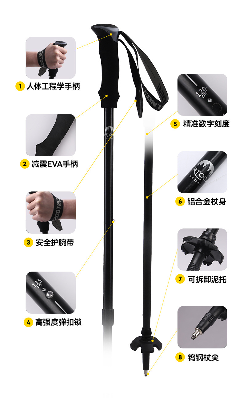 다기능 하이킹 스틱, 전문 야외 접이식 하이킹 스틱, 탄소 초경량 텔레스코픽 하이킹 장비
