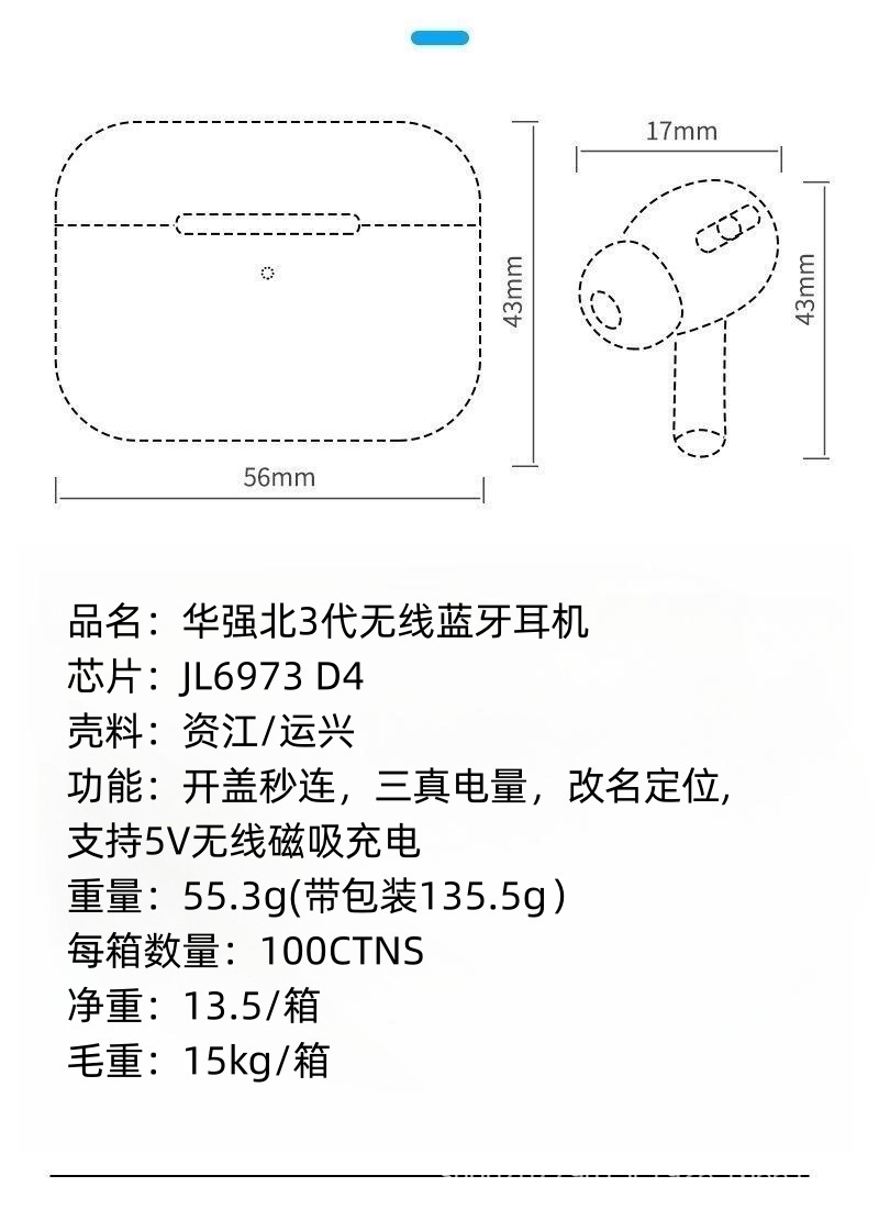 • 7세대 상위 버전 소음 감소 버전(ANC 소음 감소 + 뚜껑 열린 후 2차 연결 + 포지셔닝 이름 변경 + 무선 충전)