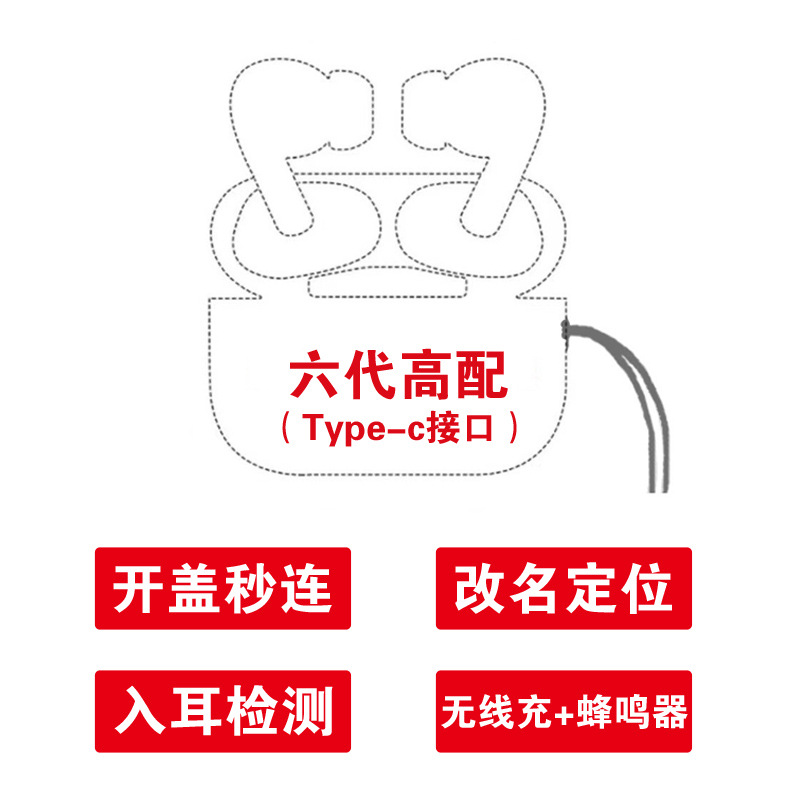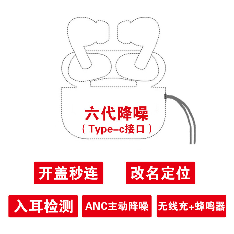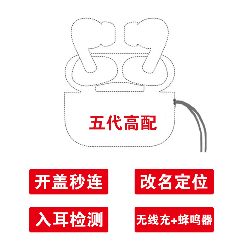 • 5세대 최고급 소음 감소 버전(ANC 소음 감소 + 뚜껑 열린 후 2차 연결 + 포지셔닝 이름 변경 + 무선 충전)