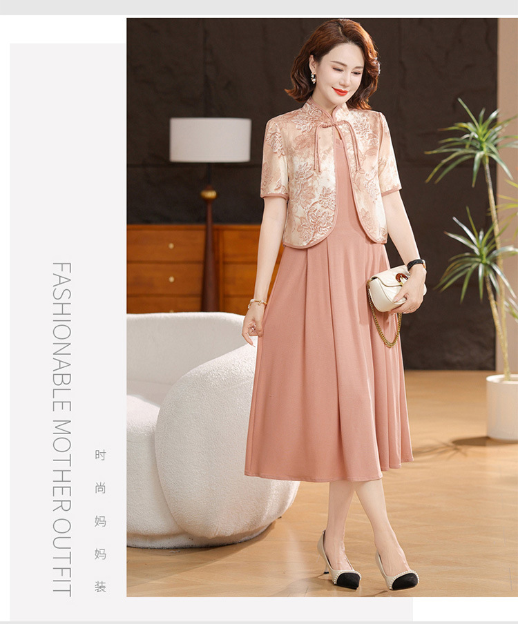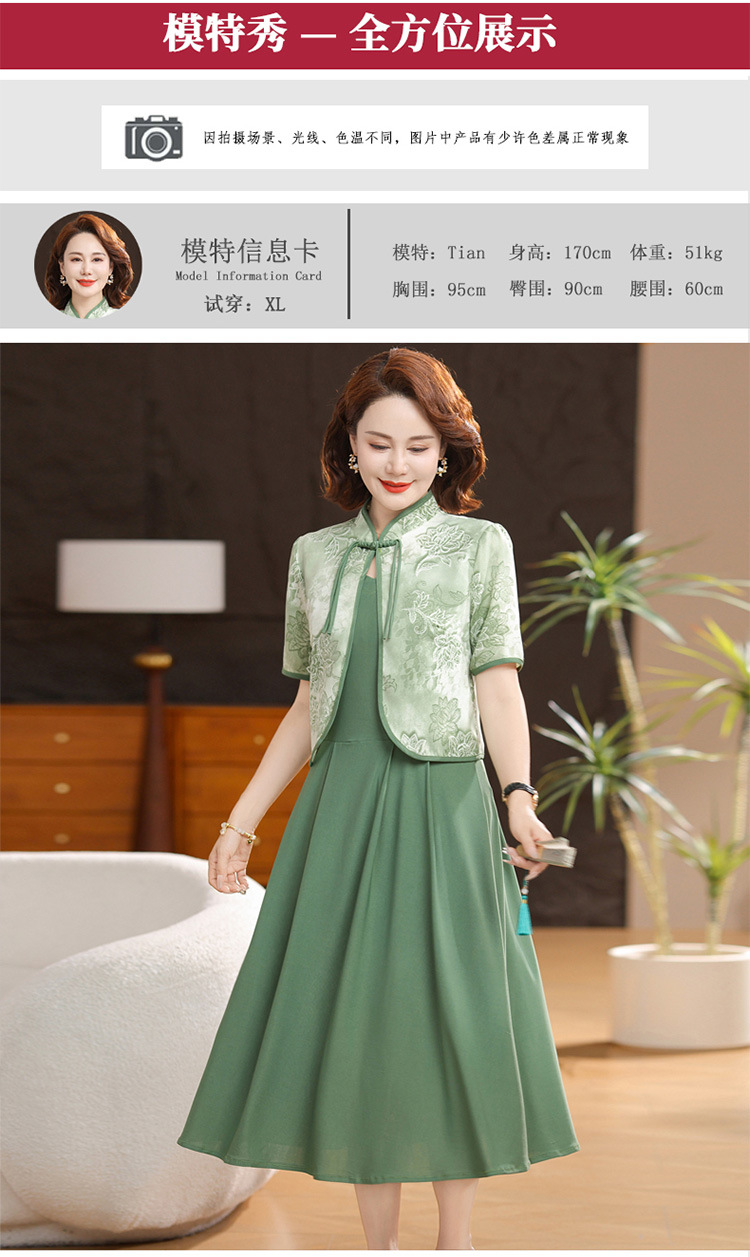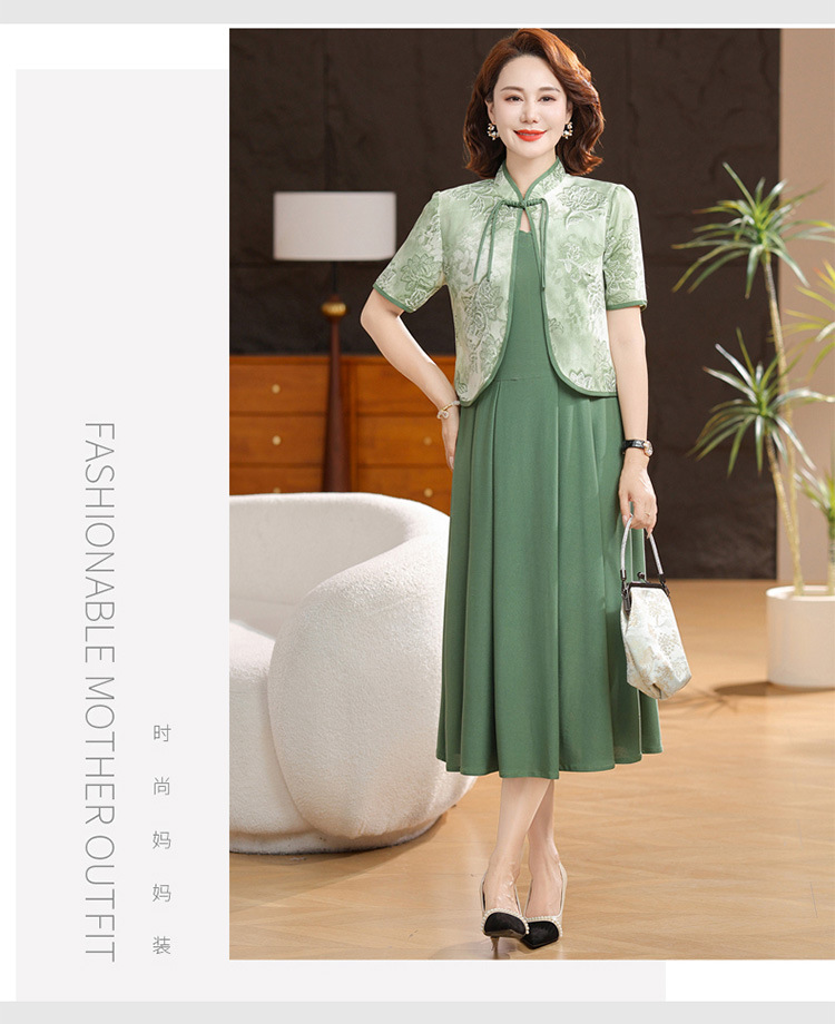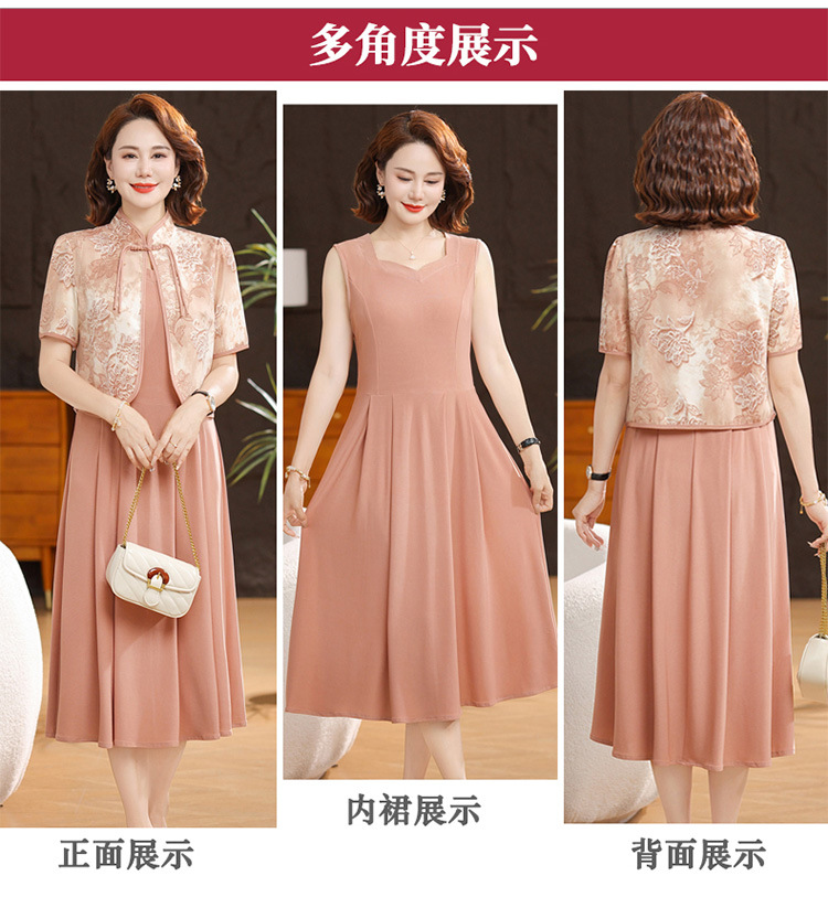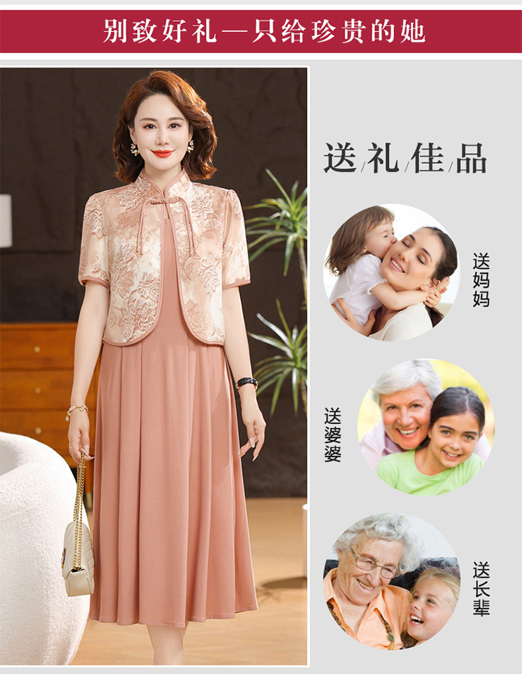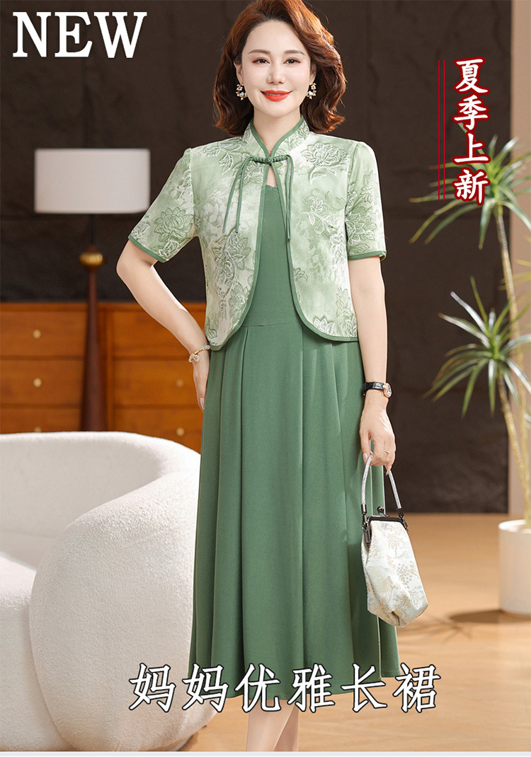 새로운 중국 스타일 어머니 여름 원피스 투피스 반팔 원피스 중년 및 노인 여성 슬리밍 유행 중간 길이 서양식 치마스토어 가기