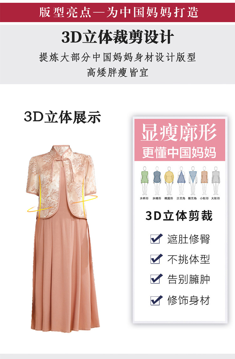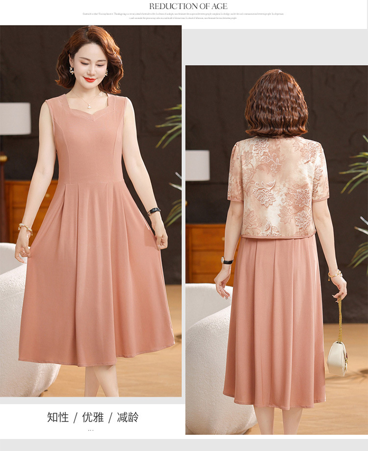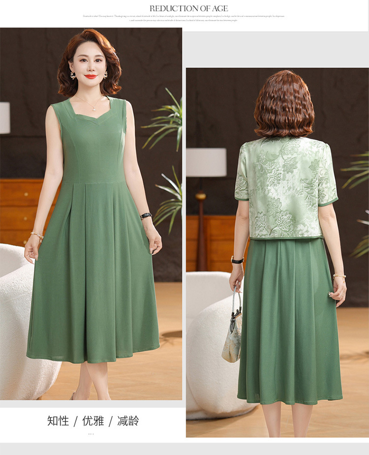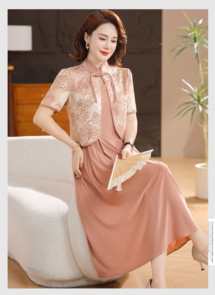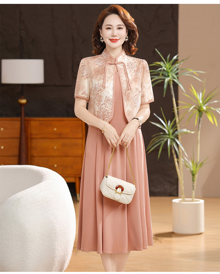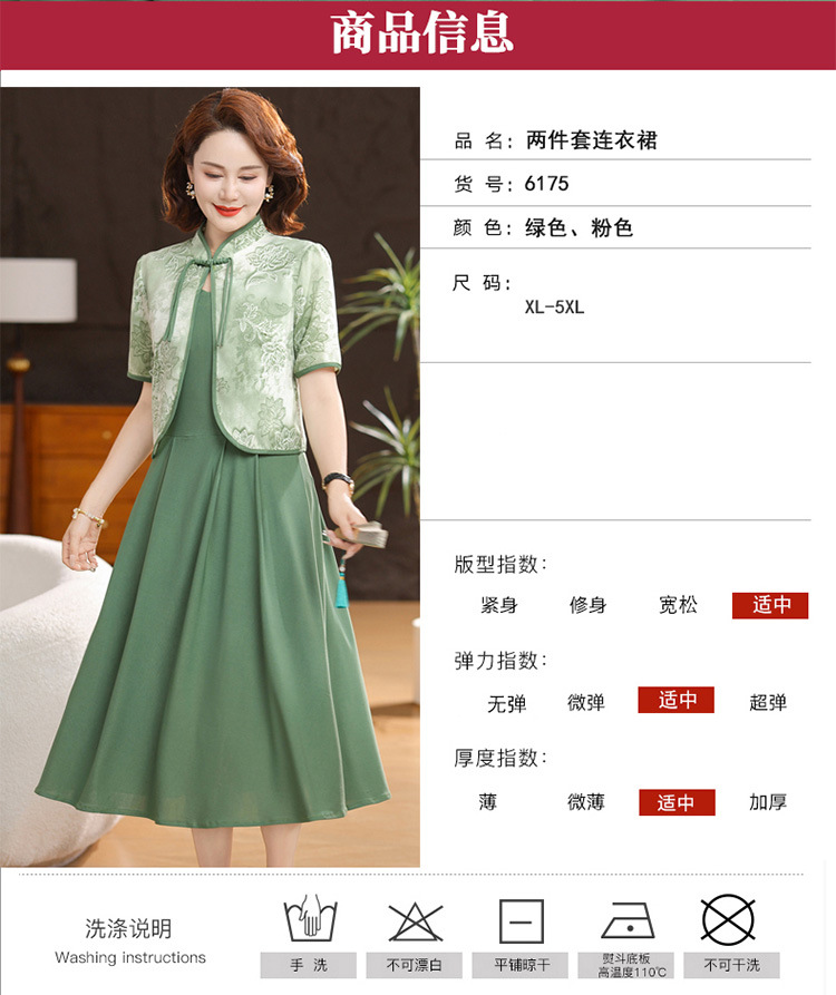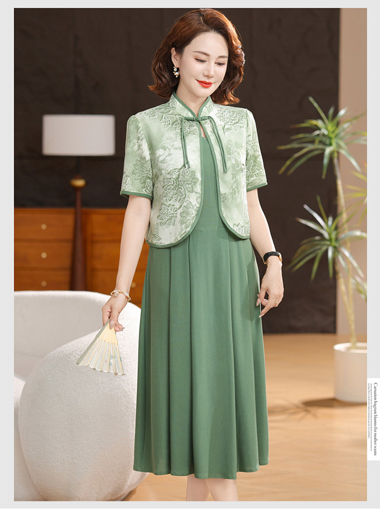 새로운 중국 스타일 어머니 여름 원피스 투피스 반팔 원피스 중년 및 노인 여성 슬리밍 유행 중간 길이 서양식 치마스토어 가기