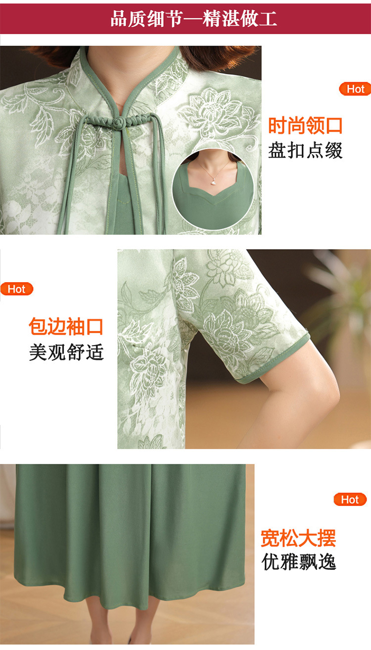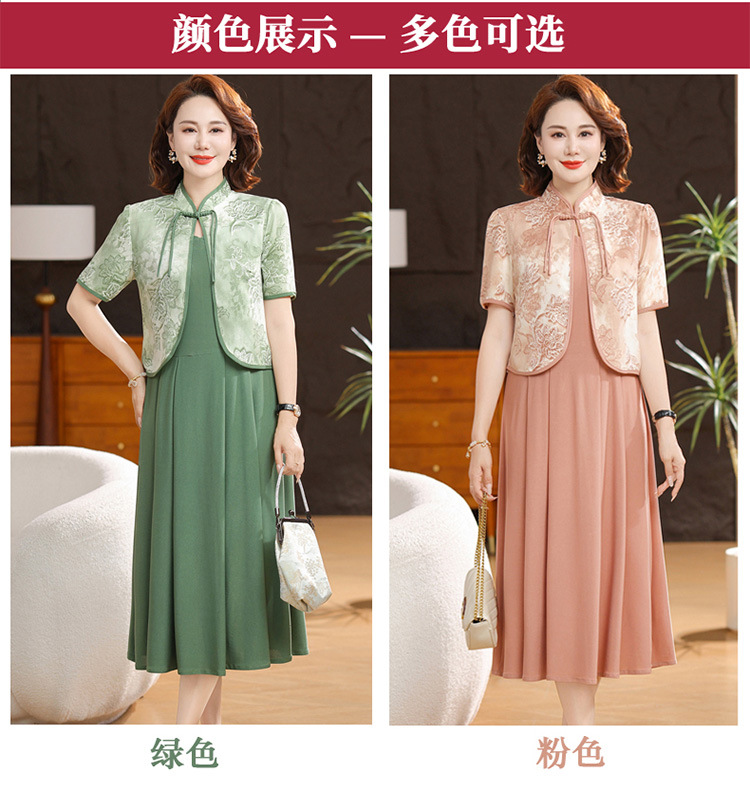 새로운 중국 스타일 어머니 여름 원피스 투피스 반팔 원피스 중년 및 노인 여성 슬리밍 유행 중간 길이 서양식 치마