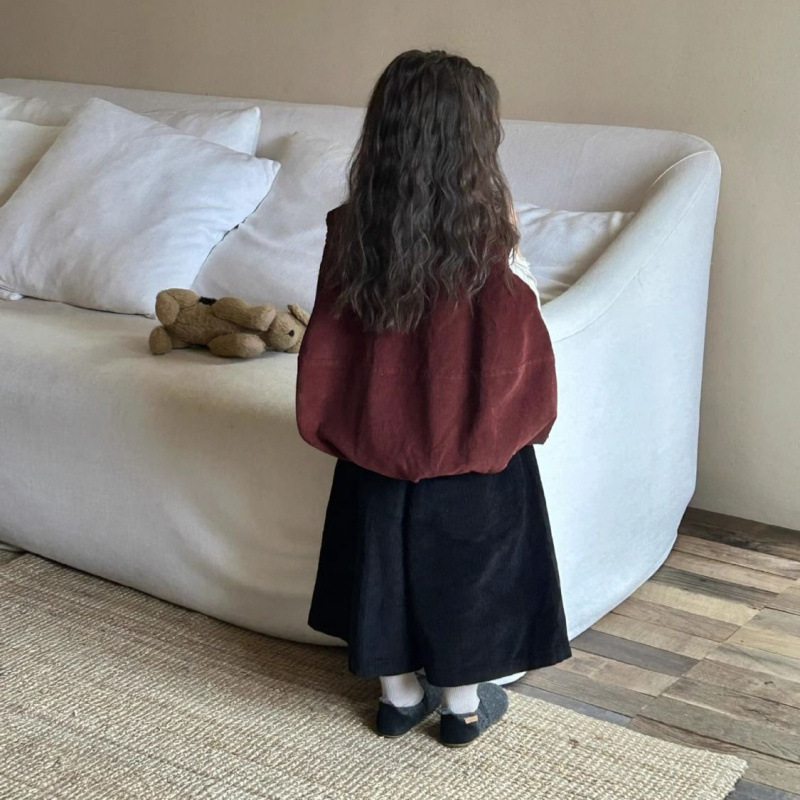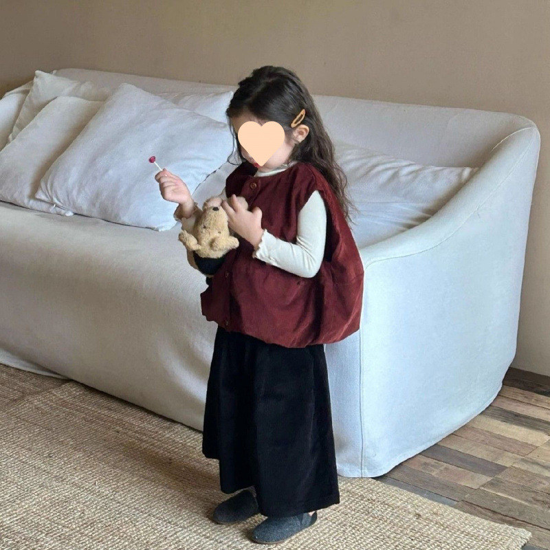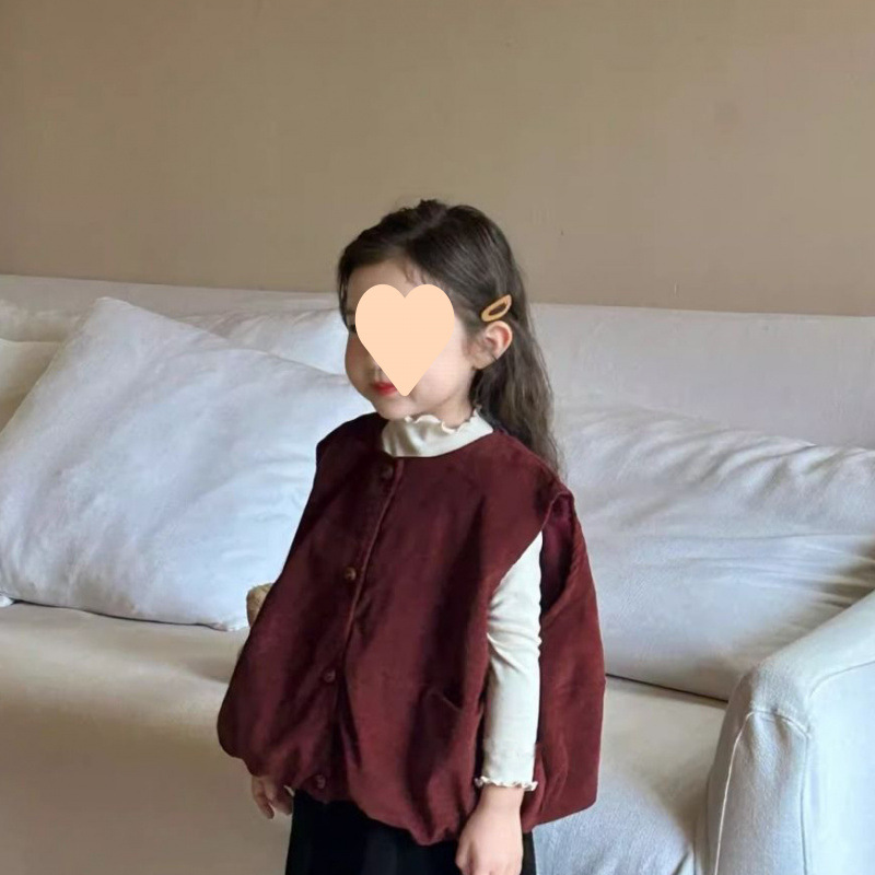 여자 코듀로이 앙고라 레드 조끼 2025 가을 새로운 한국 스타일 아동 의류 유행 유치원 조끼스토어 가기