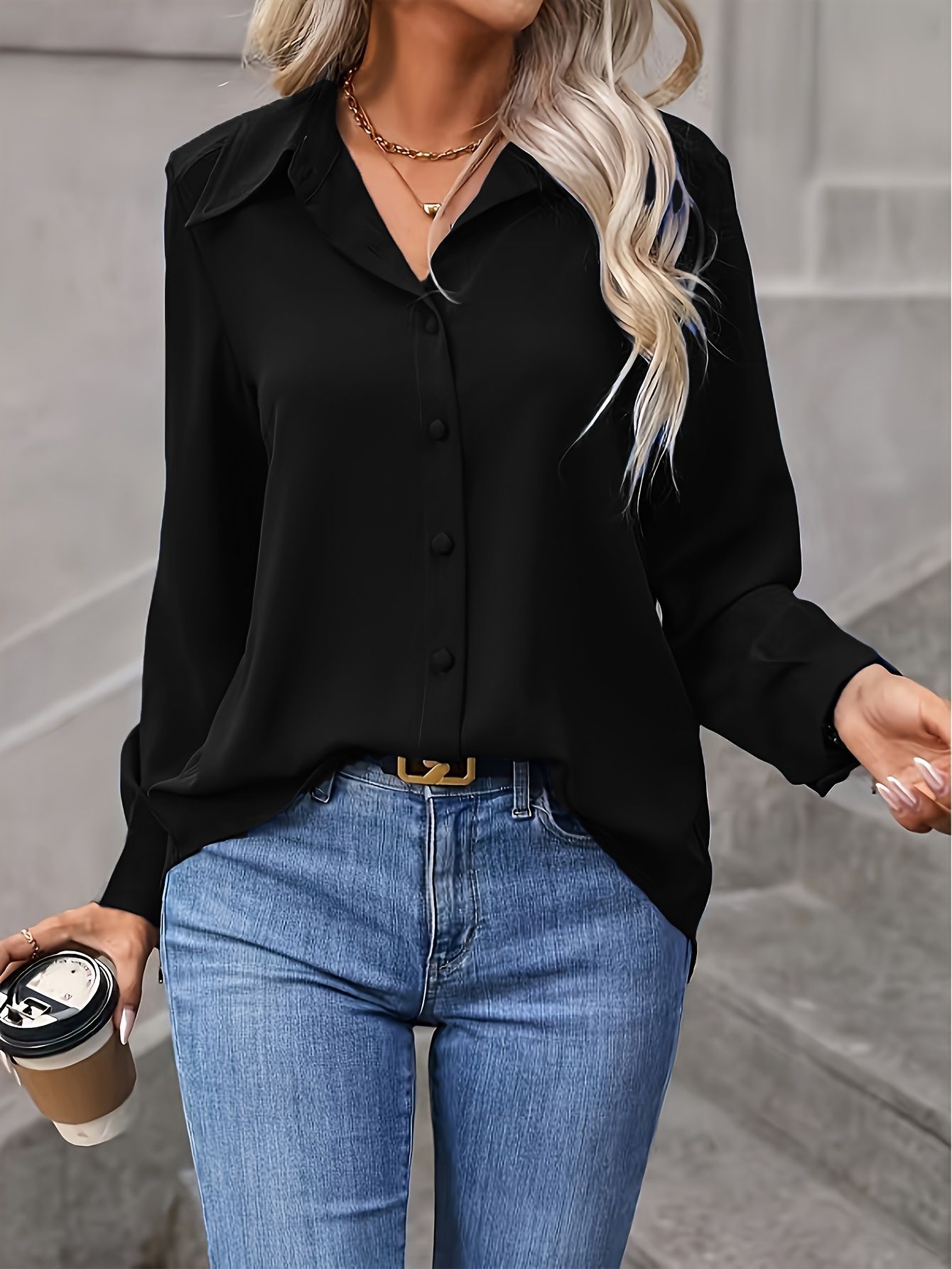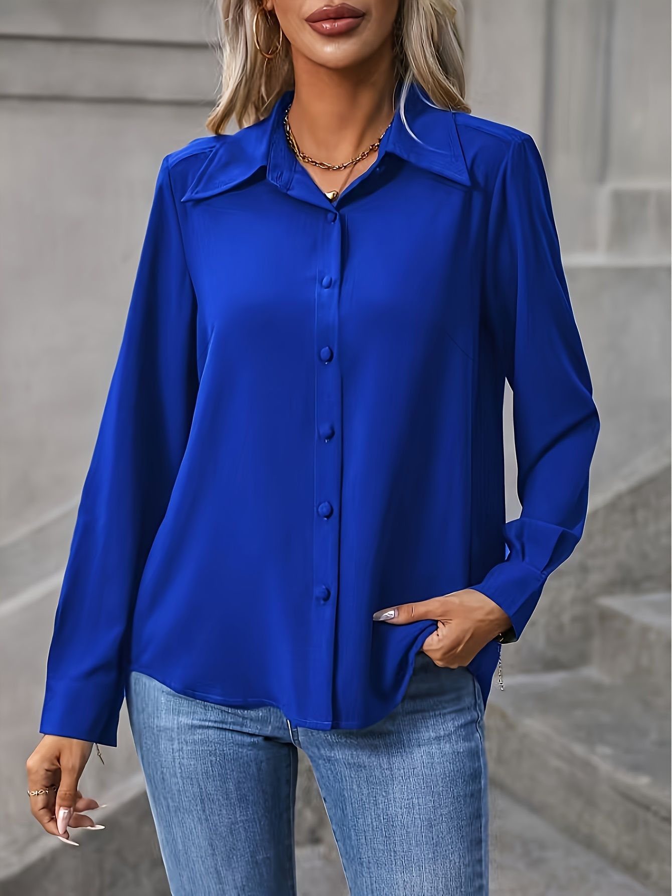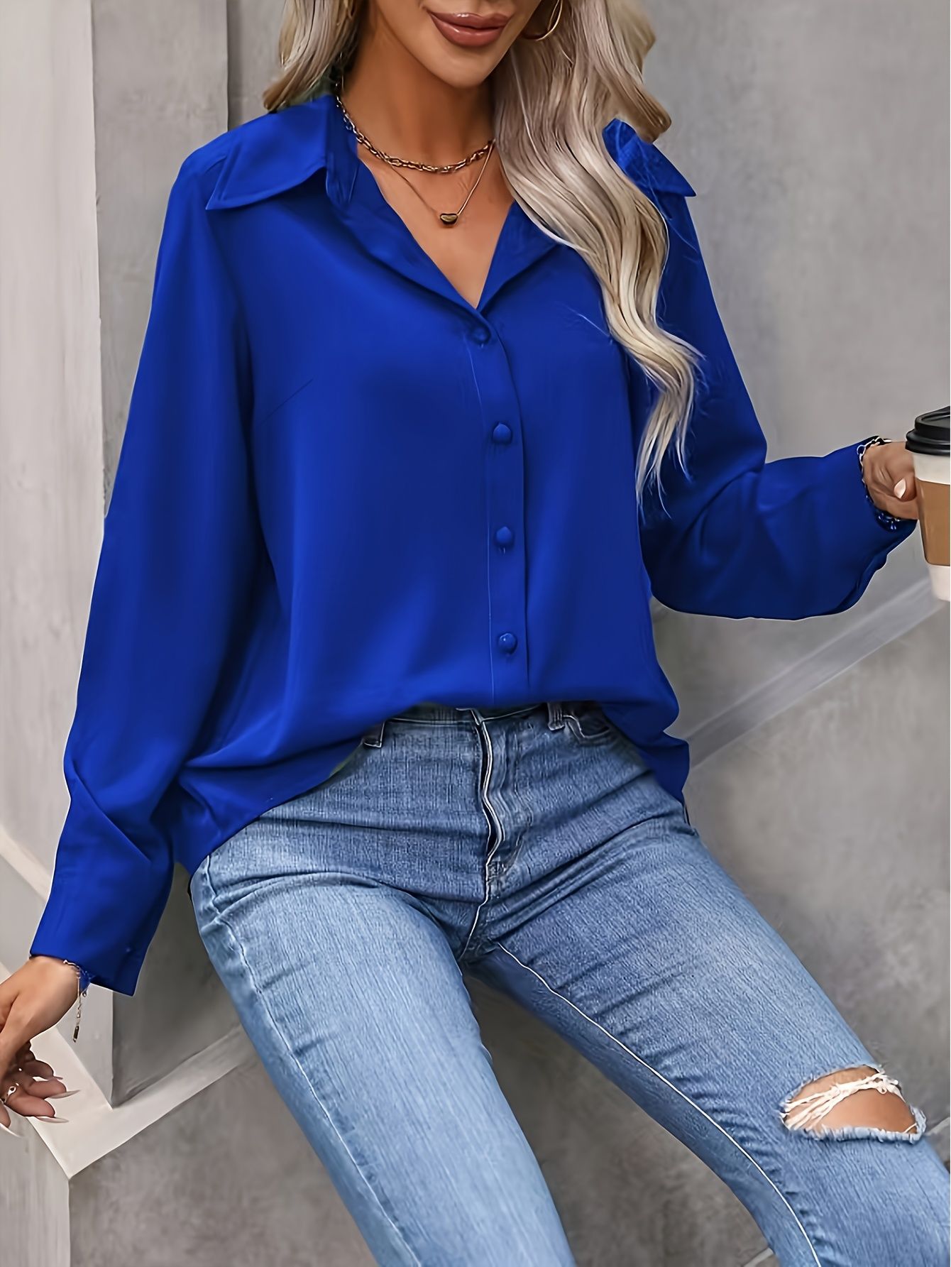 아마존 유럽과 미국의 국경 간 대외 무역 여성 의류 2025 봄, 가을 새로운 캐주얼 루즈 솔리드 컬러 긴팔 셔츠