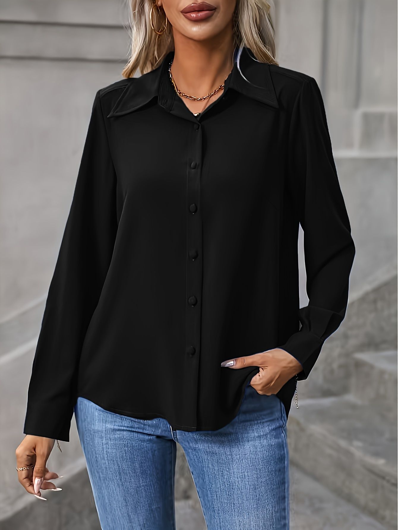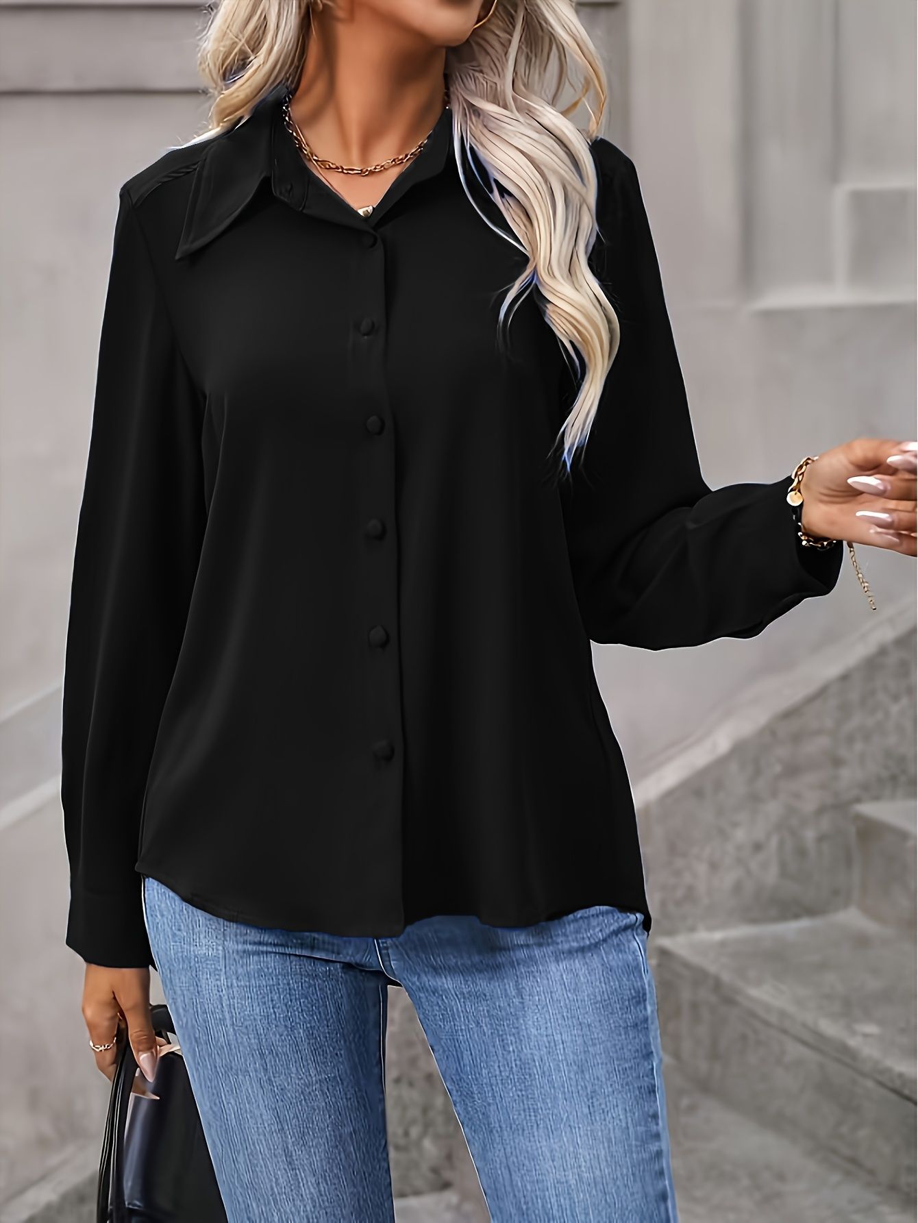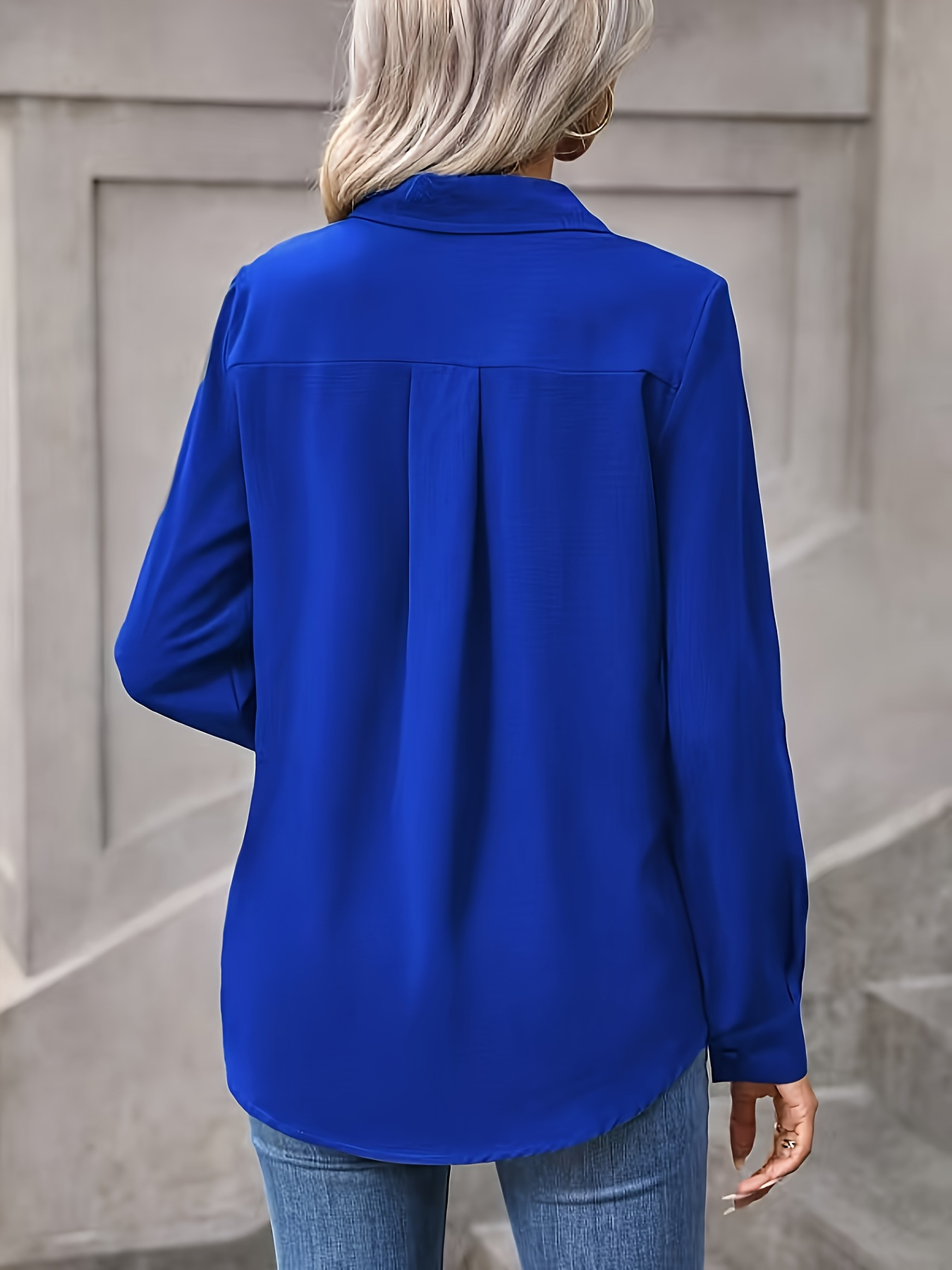 아마존 유럽과 미국의 국경 간 대외 무역 여성 의류 2025 봄, 가을 새로운 캐주얼 루즈 솔리드 컬러 긴팔 셔츠