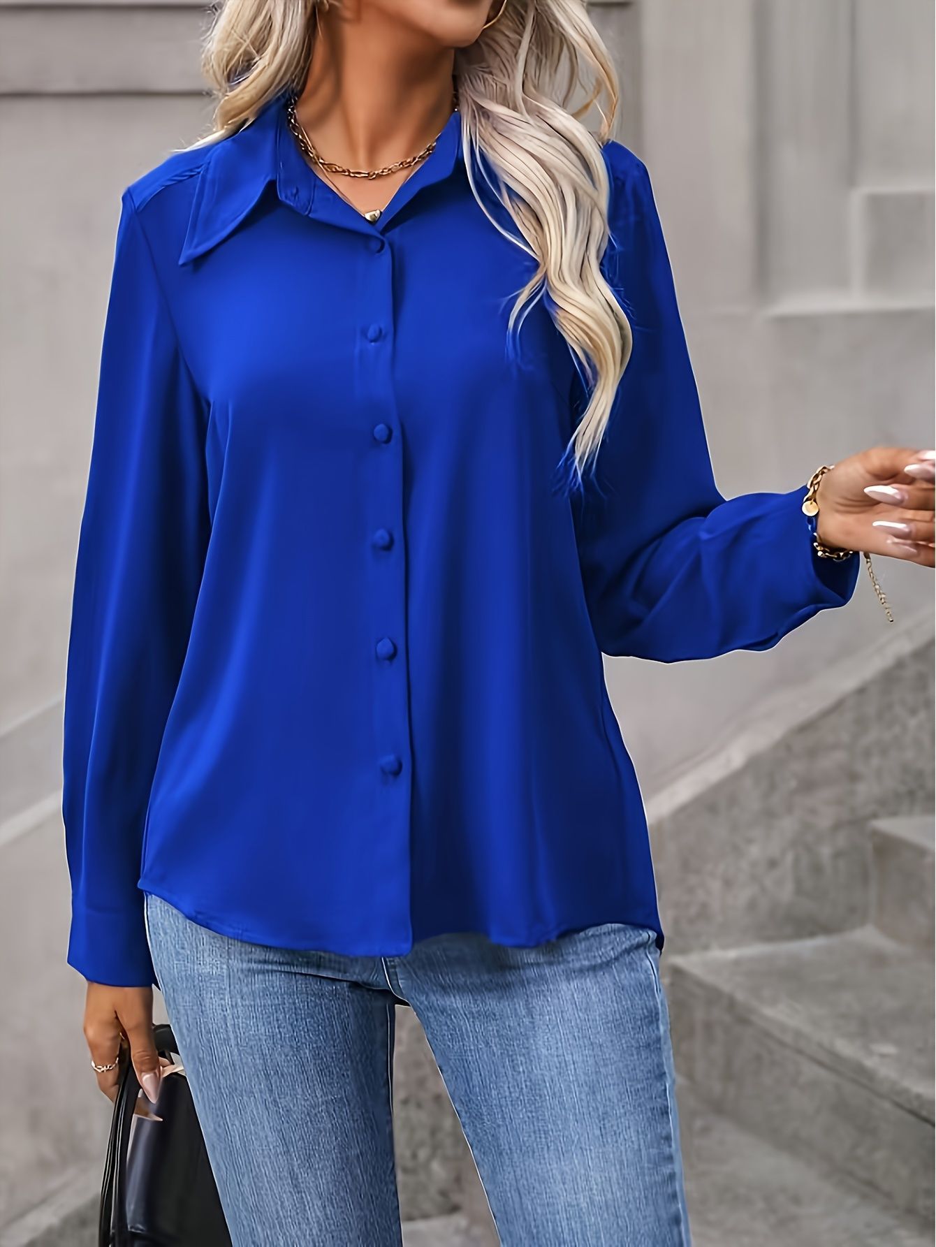 아마존 유럽과 미국의 국경 간 대외 무역 여성 의류 2025 봄, 가을 새로운 캐주얼 루즈 솔리드 컬러 긴팔 셔츠스토어 가기