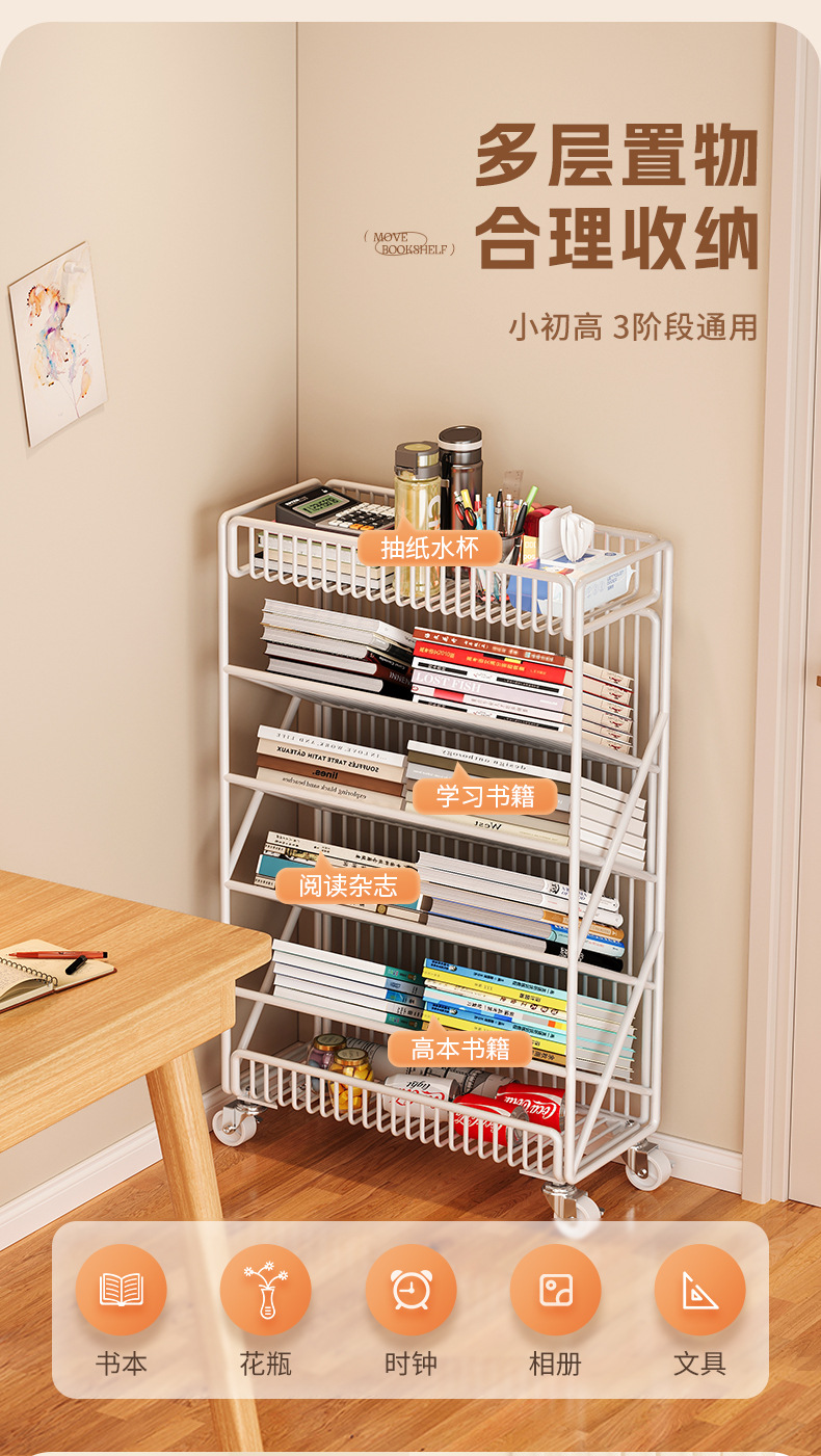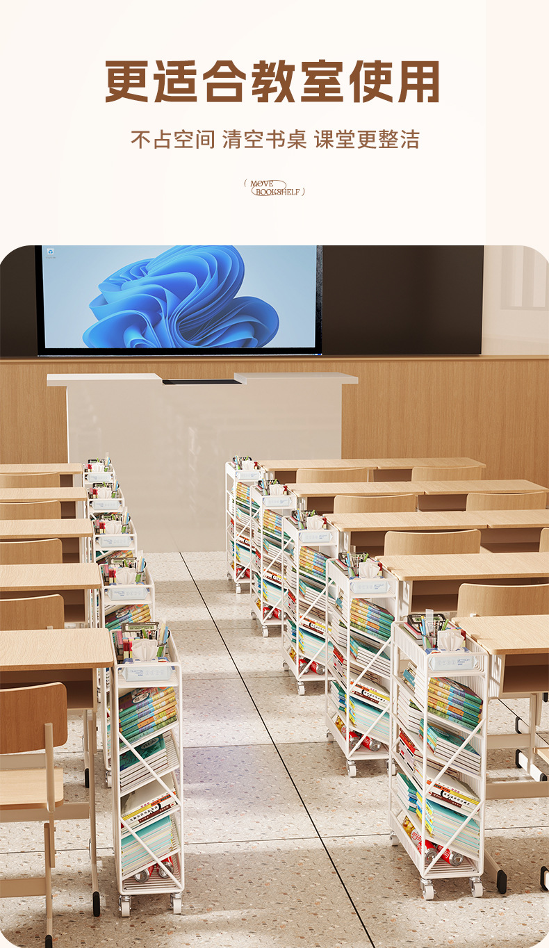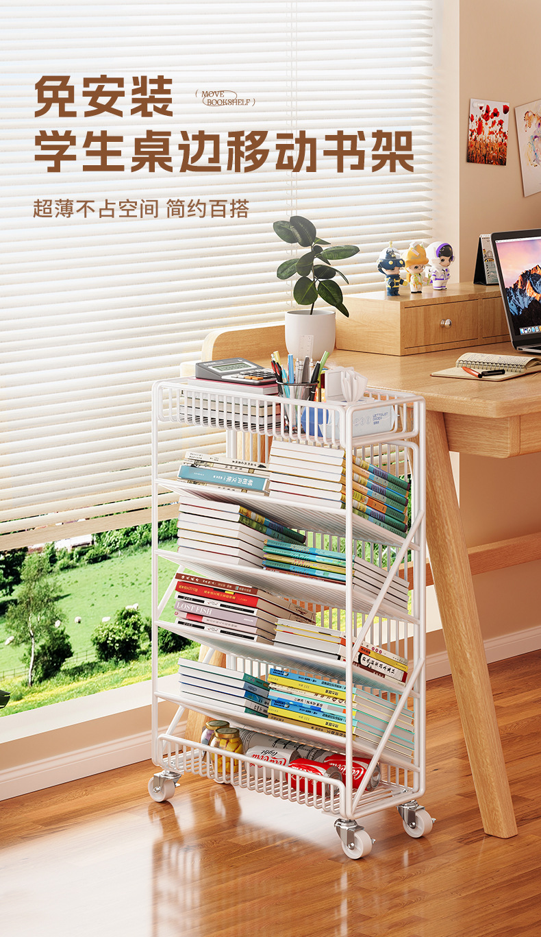 이동식 책상 옆 수납 선반 작은 책장 교실 옆 학생 도서 수납 선반 책 스탠드 데스크탑 책상