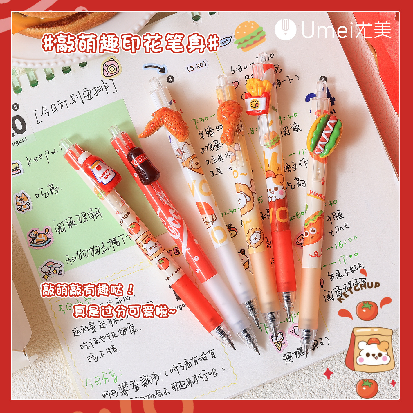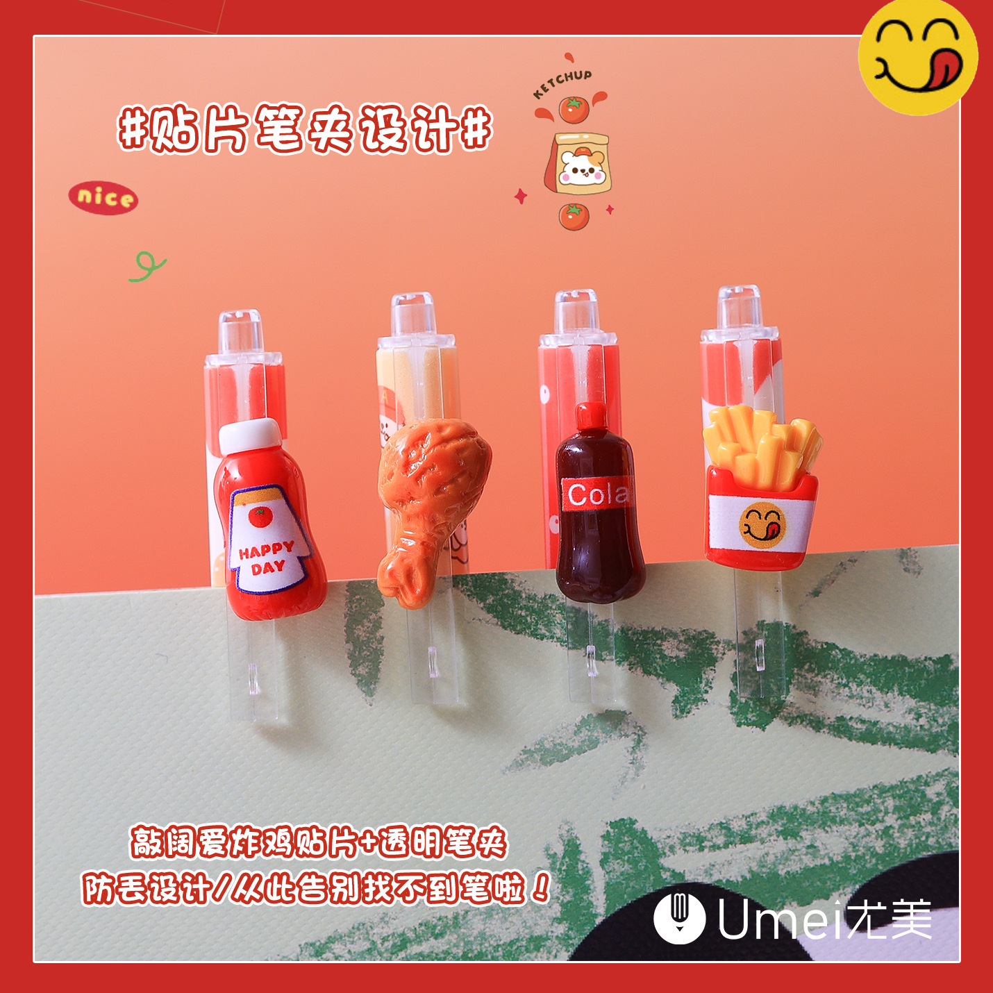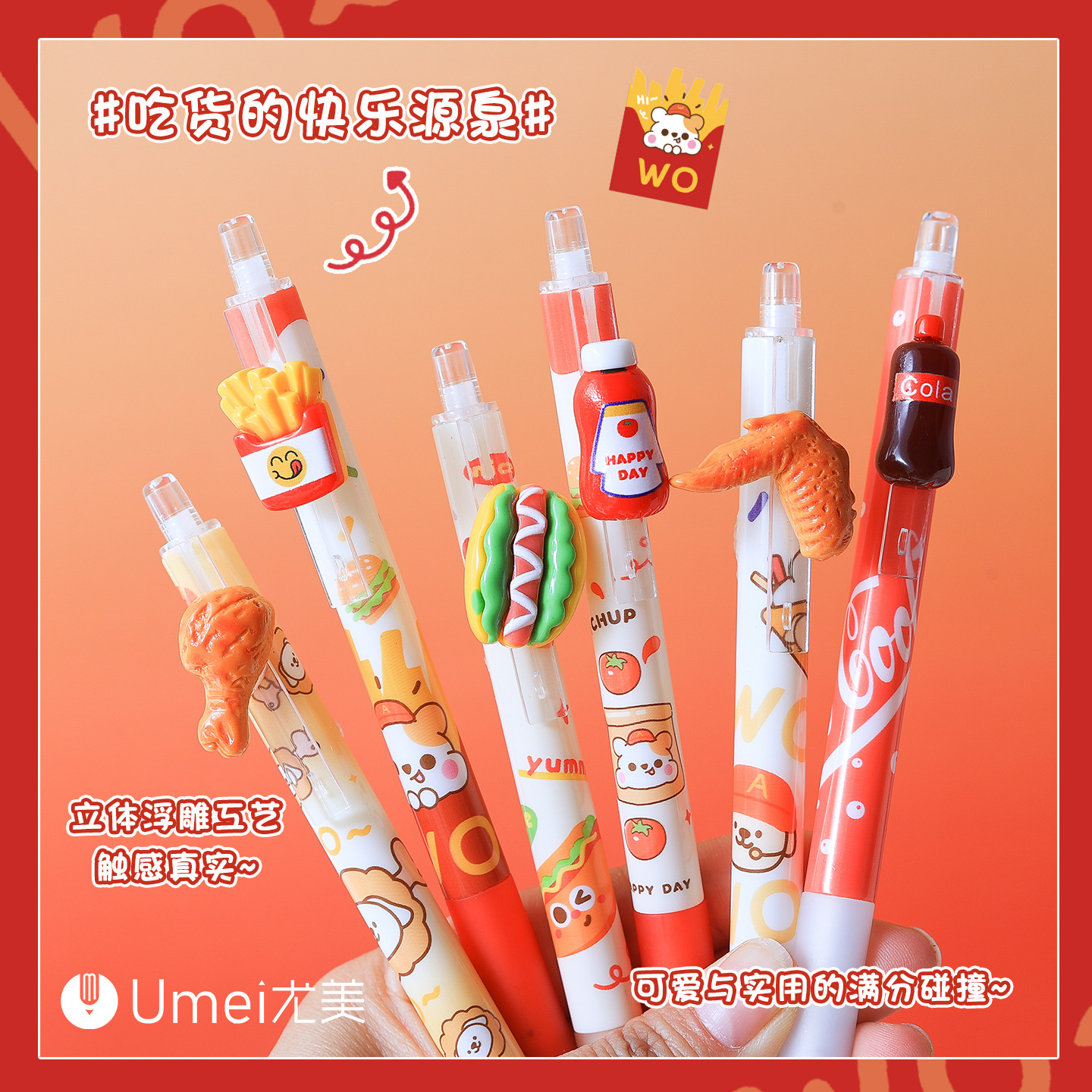 Youmei 3184 프라이드 치킨 스낵 프레스 젤 펜 높은 컬러 값 스테레오 패치 초등학교 학생들의 글쓰기 블랙 브러쉬 펜스토어 가기