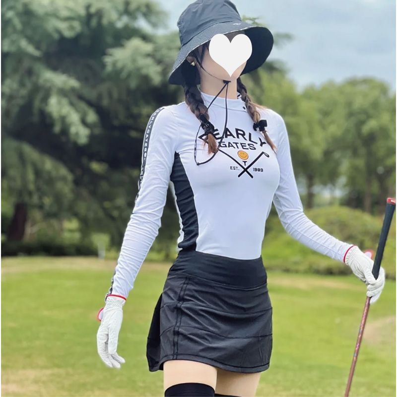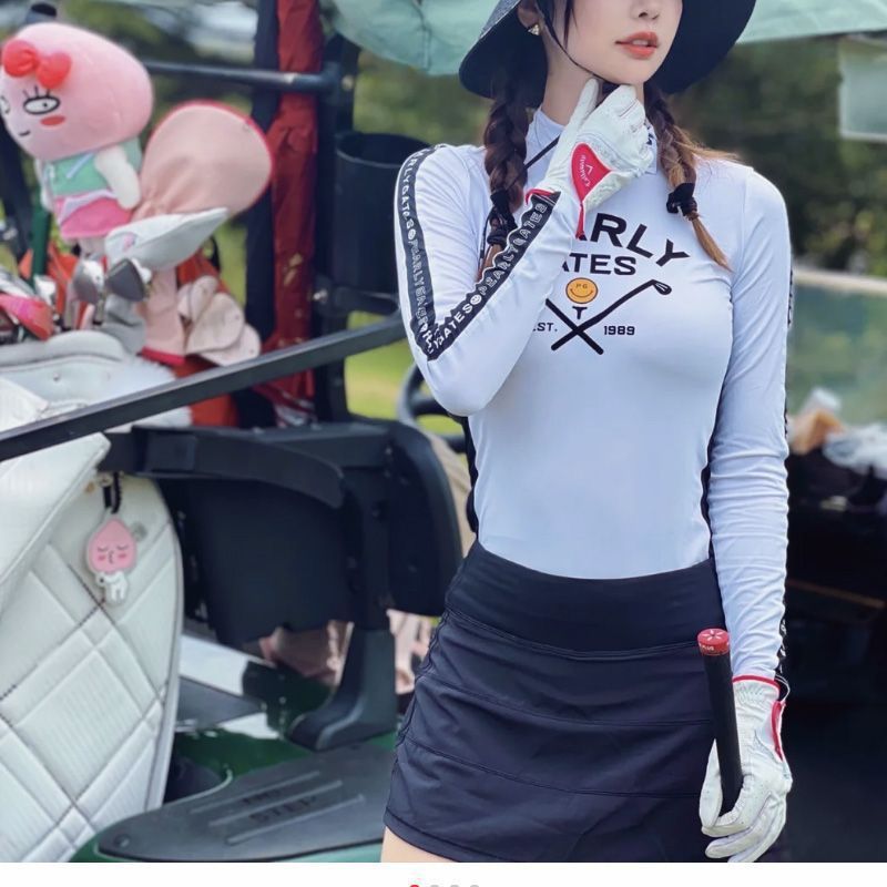 한국 골프 의류 여성용 긴팔 스포츠 속건성 통기성 슬림 스트레치 다용도 프린트 티셔츠 라운드 넥 골프 유니폼스토어 가기