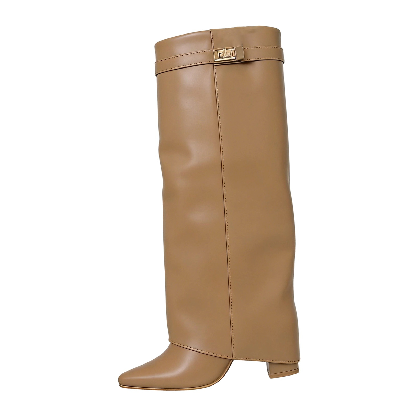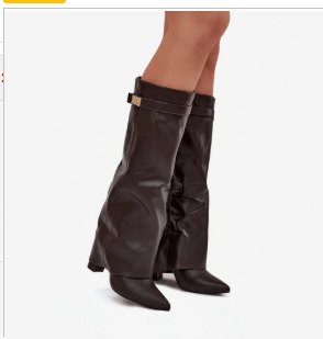 여성용 크로스보더 대외 무역 부츠, 뾰족한 앞코, 큰 튜브, 직선 금속 버클, 중간 길이 부츠, 대형 두꺼운 굽 바지 부츠, 여성용 부츠스토어 가기