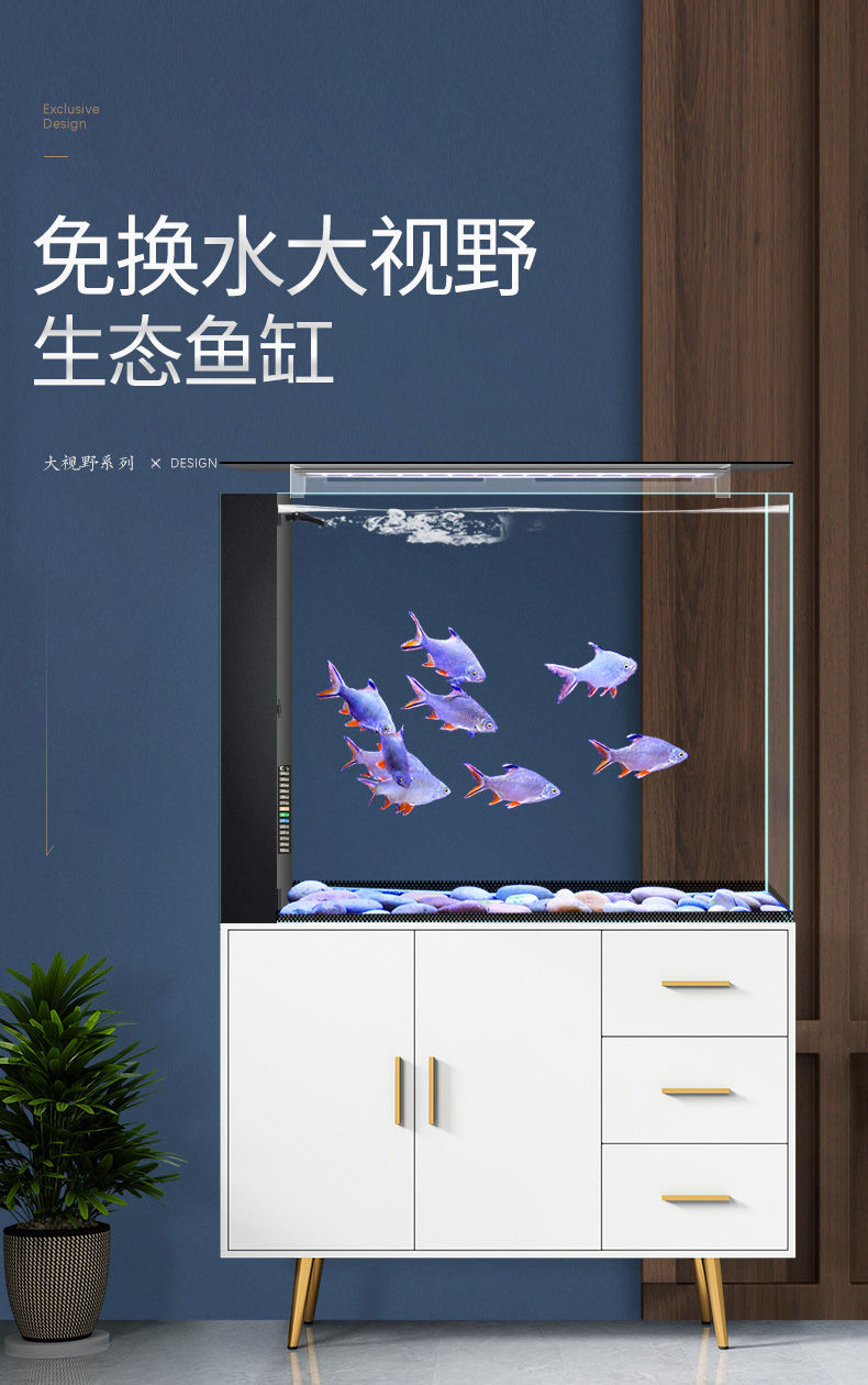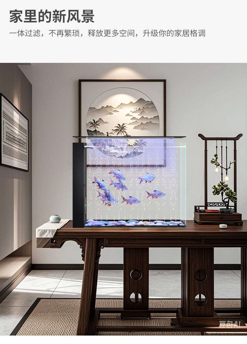 거실 스크린 파티션 탱크 일체형 물 교체 없음 생태 조경 데스크탑 초백색 유리 욕실 반벽 수조스토어 가기