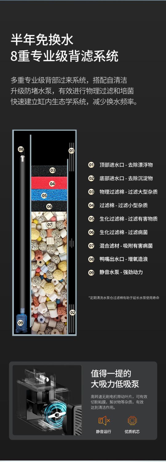 • [추가 램프 스탠드] 80cm 스크린 사이드 필터 탱크 + 검정색 유리 커버