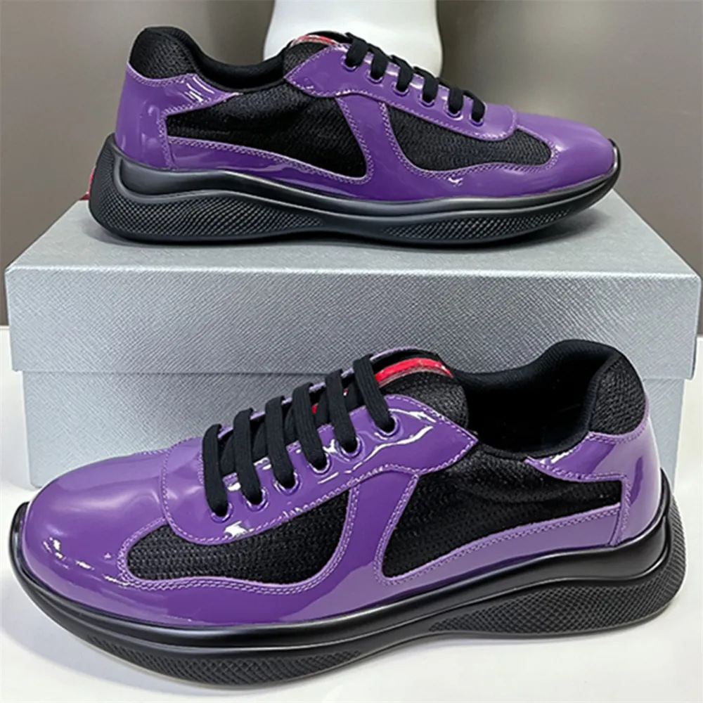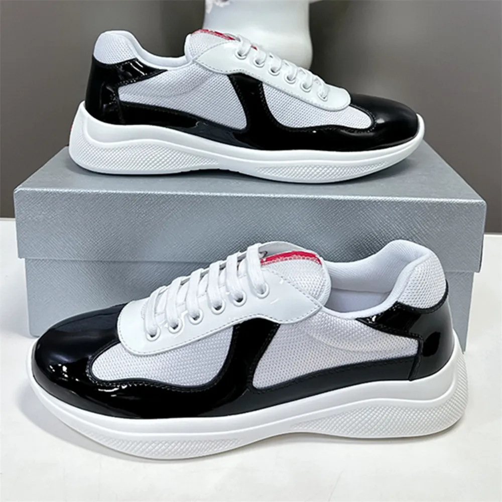 Spot P 가정용 광택 페이턴트 가죽 남성 및 여성 운동화, 트렌디하고 다재다능한 가죽 통기성 라운드 투 커플 여행 및 등산