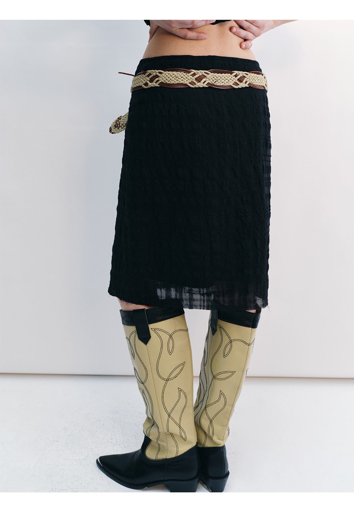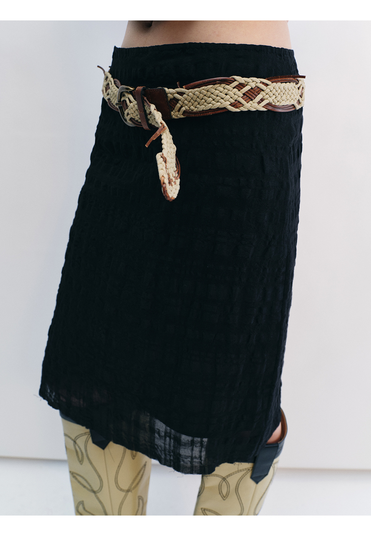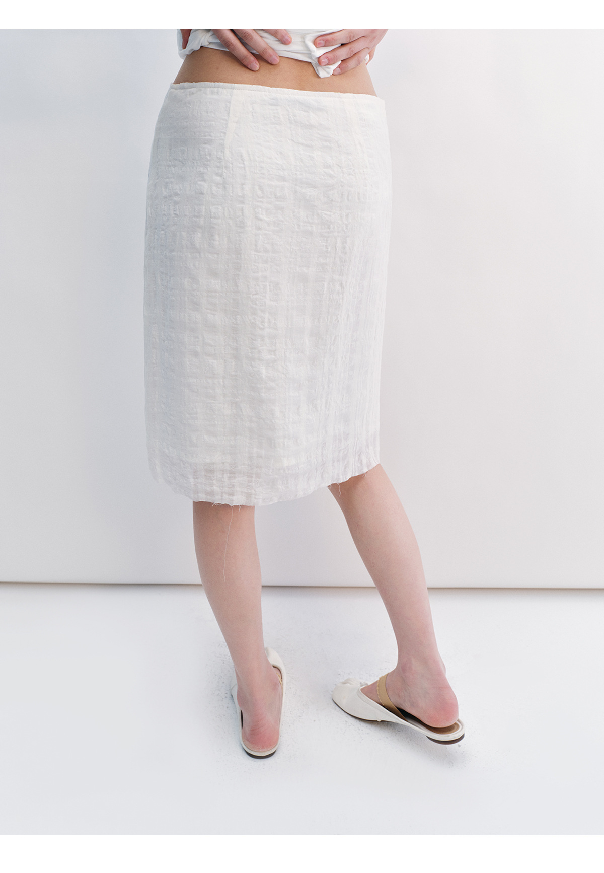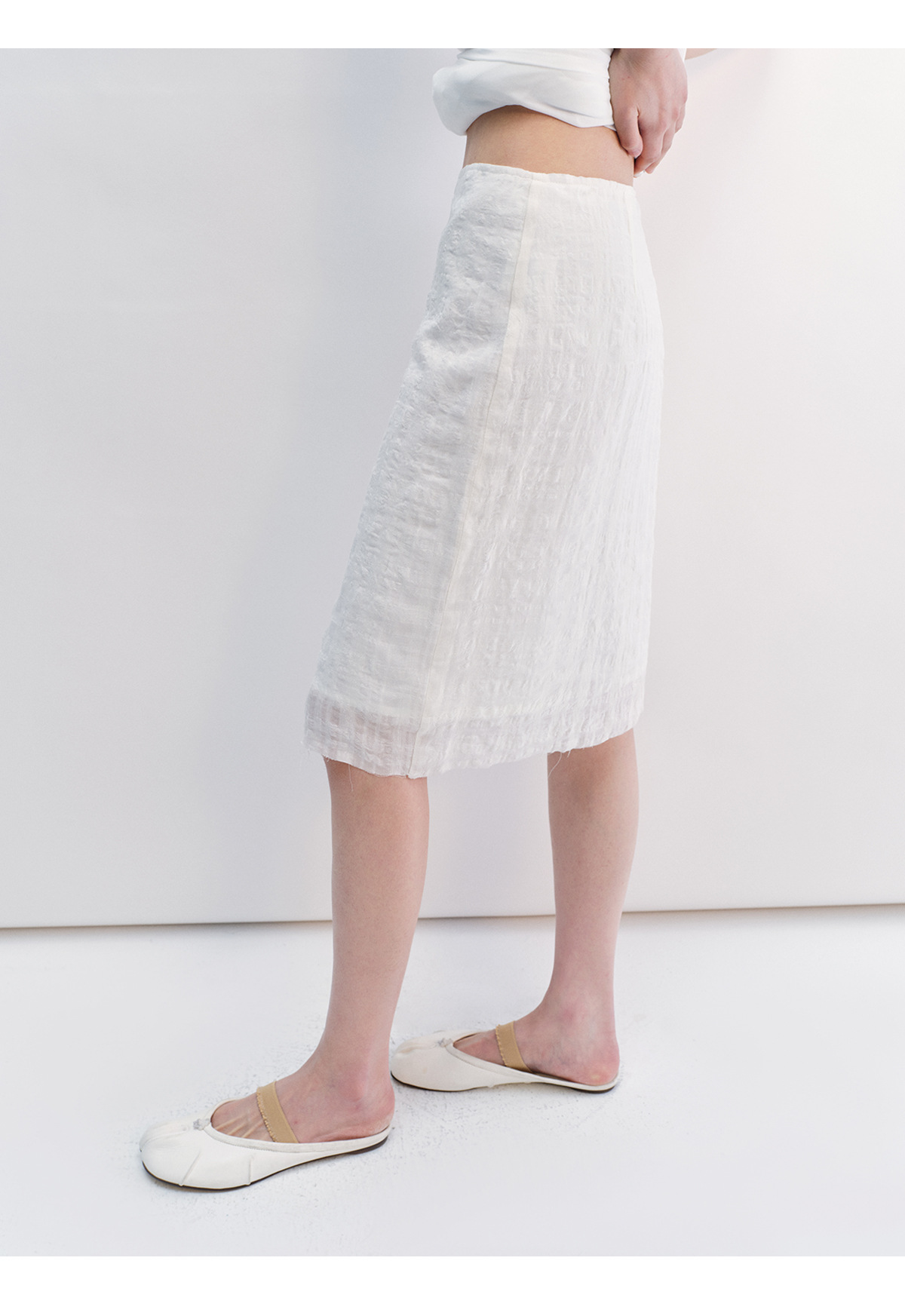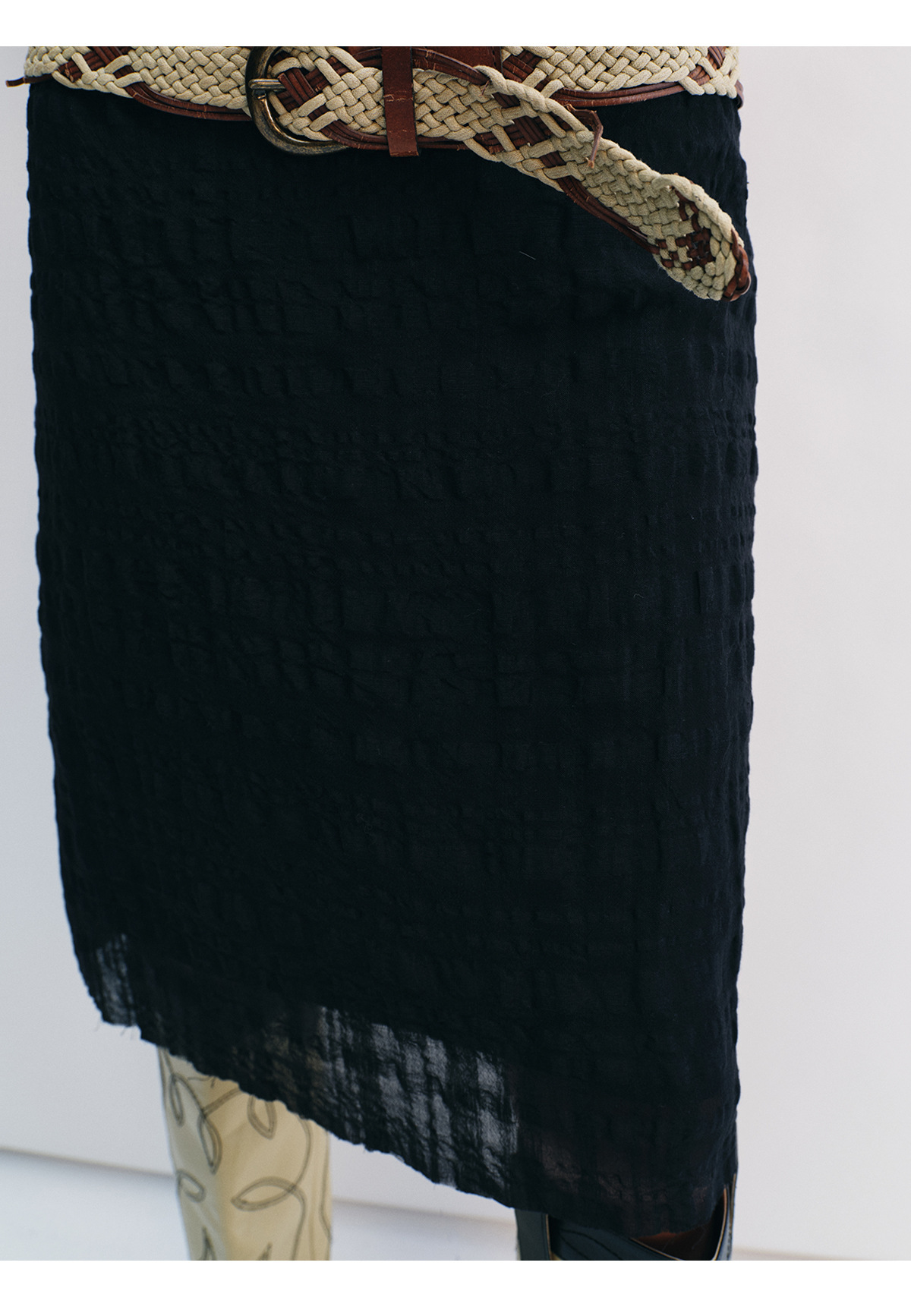 [시간 인식] 새로운 리넨 텐셀 피부 친화적 인 통기성 자카드 질감 기술 솔리드 컬러 모피 가장자리 스커트 여성 V8732