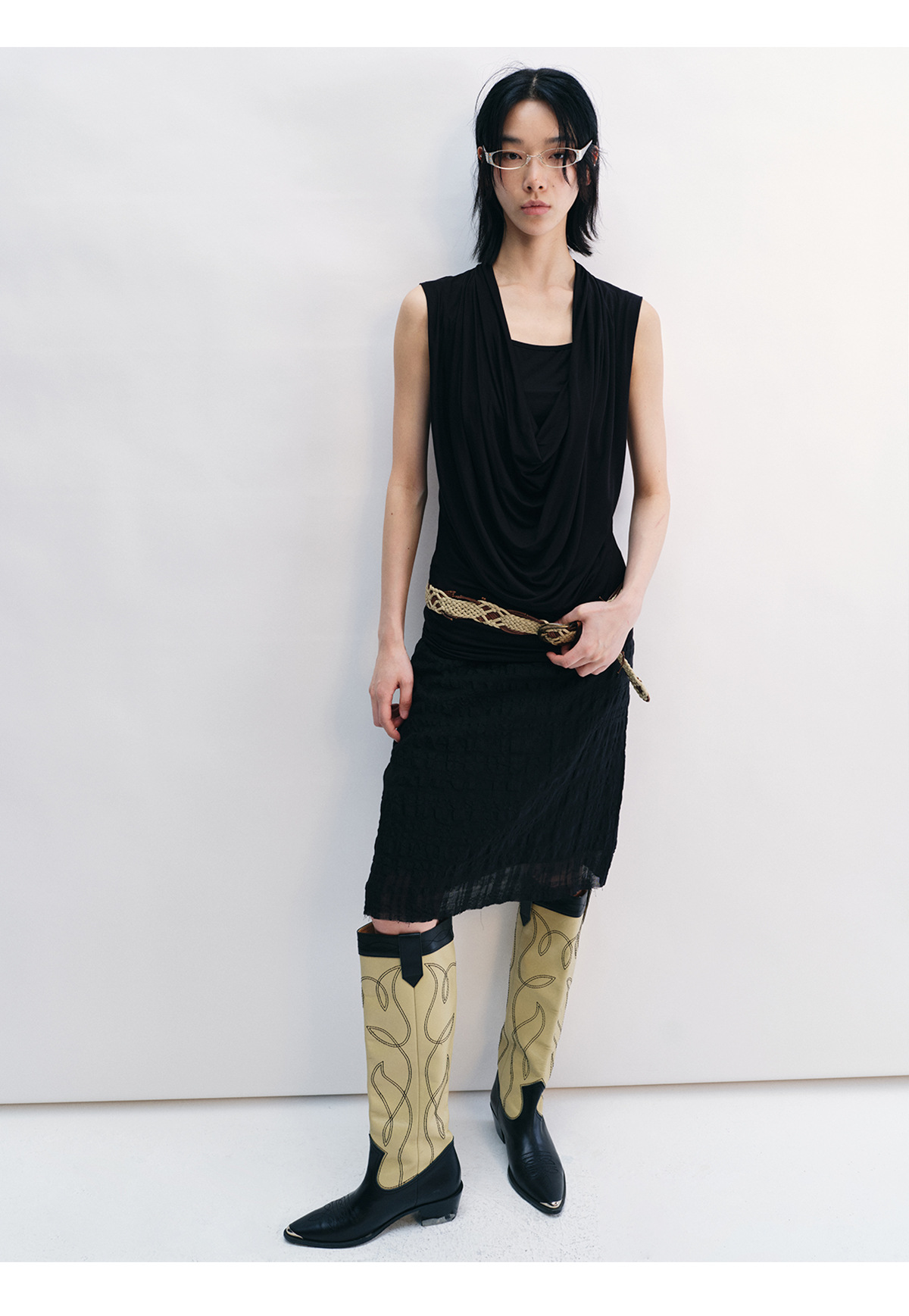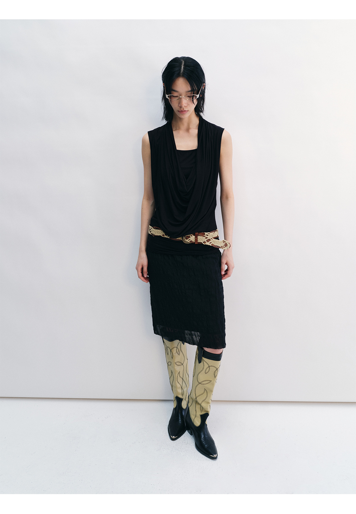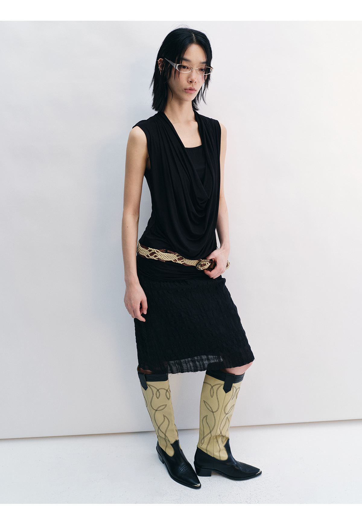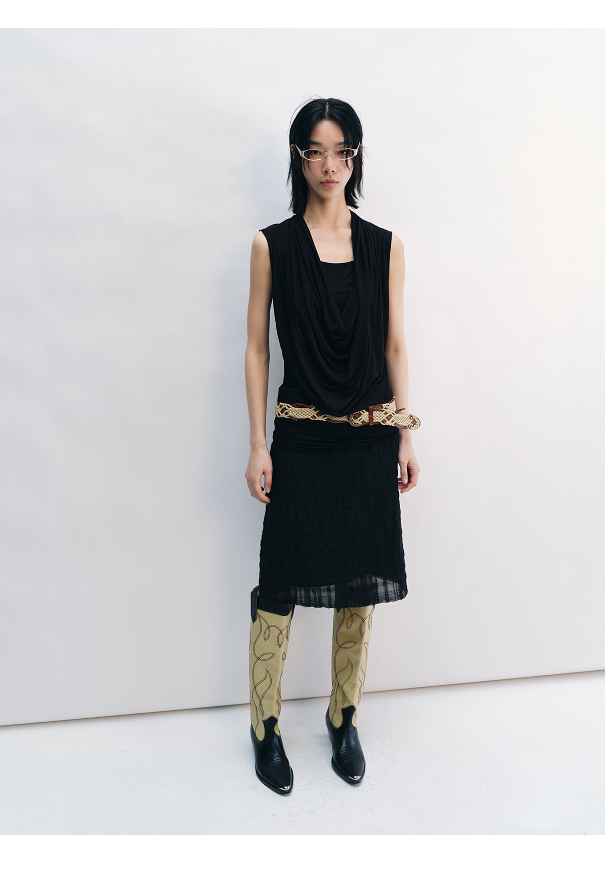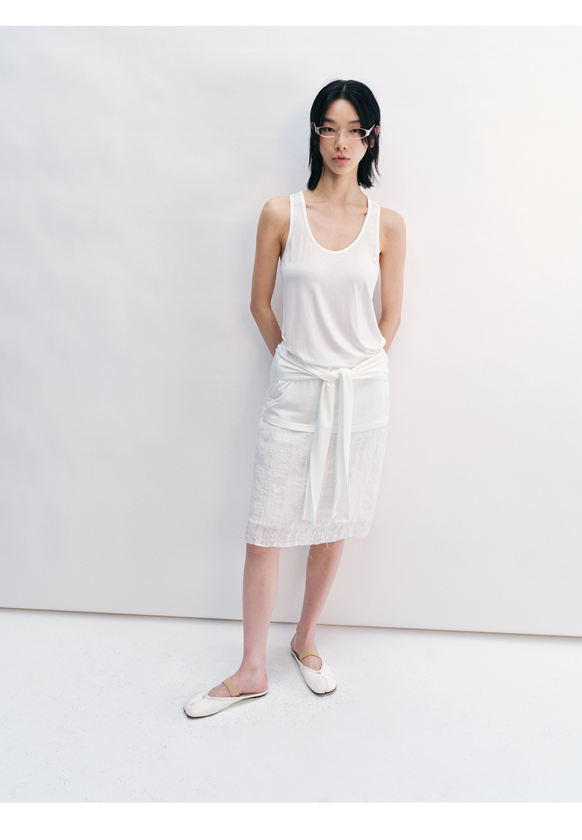 [시간 인식] 새로운 리넨 텐셀 피부 친화적 인 통기성 자카드 질감 기술 솔리드 컬러 모피 가장자리 스커트 여성 V8732