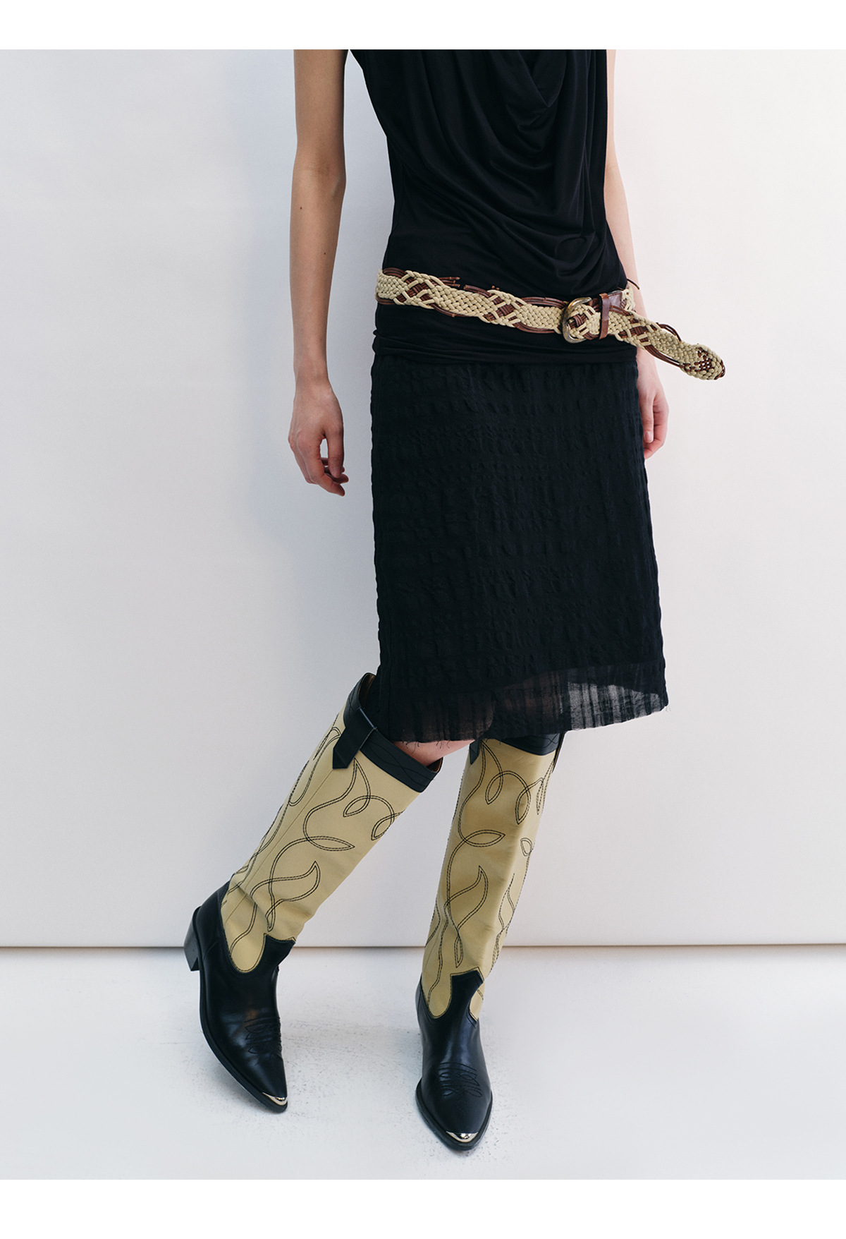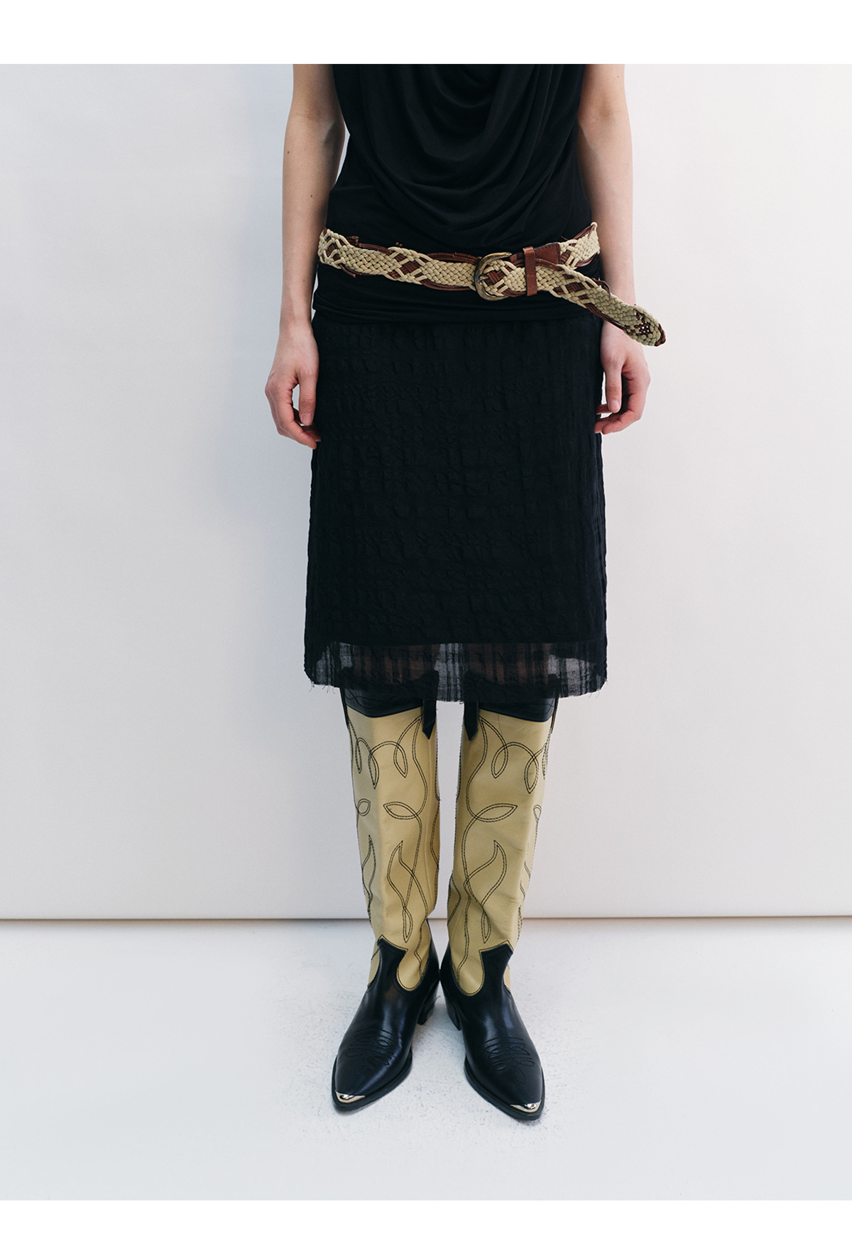 [시간 인식] 새로운 리넨 텐셀 피부 친화적 인 통기성 자카드 질감 기술 솔리드 컬러 모피 가장자리 스커트 여성 V8732스토어 가기