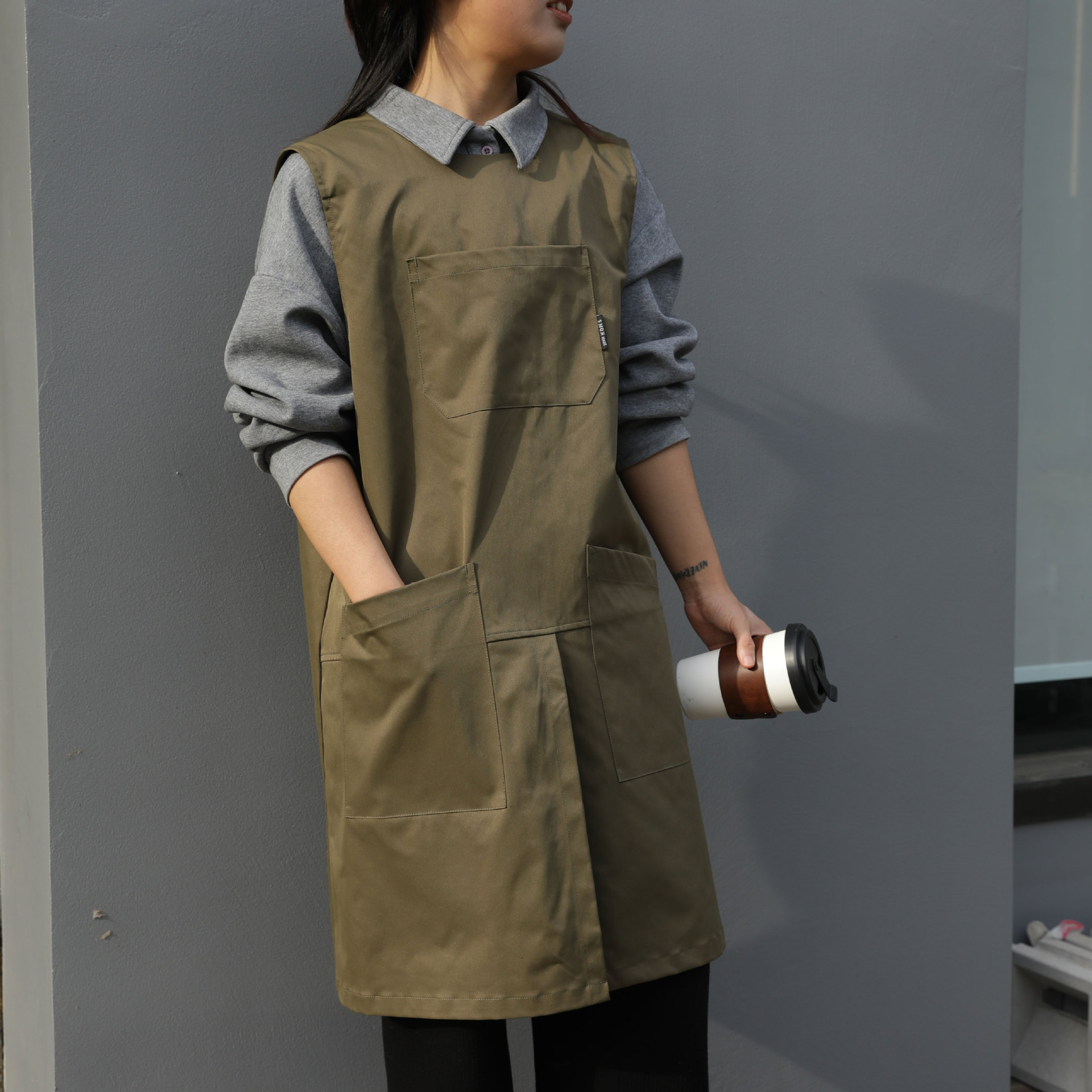 temu 작업복 앞치마 방오 및 얼룩 방지 바리스타 케이터링 밀크티 숍 남성과 여성을 위한 2025년 새로운 작업복