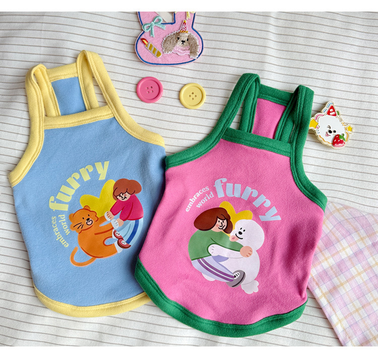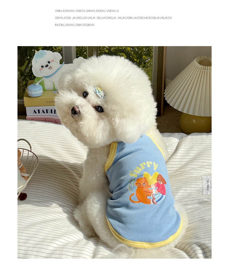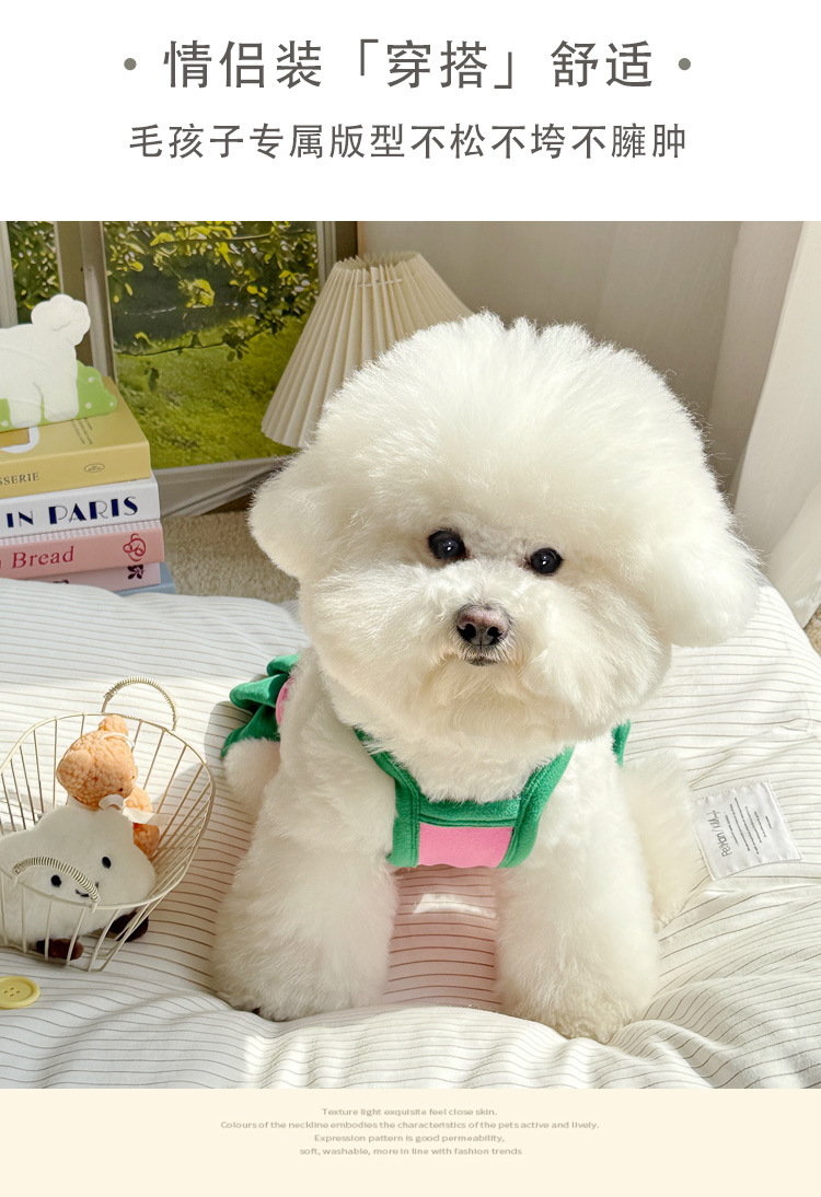 일본과 한국 스타일의 귀여운 애완 동물 개 고양이 옷 봄과 가을 폭발 부드러운 귀여운 슬리밍 베이스 싱글 착용