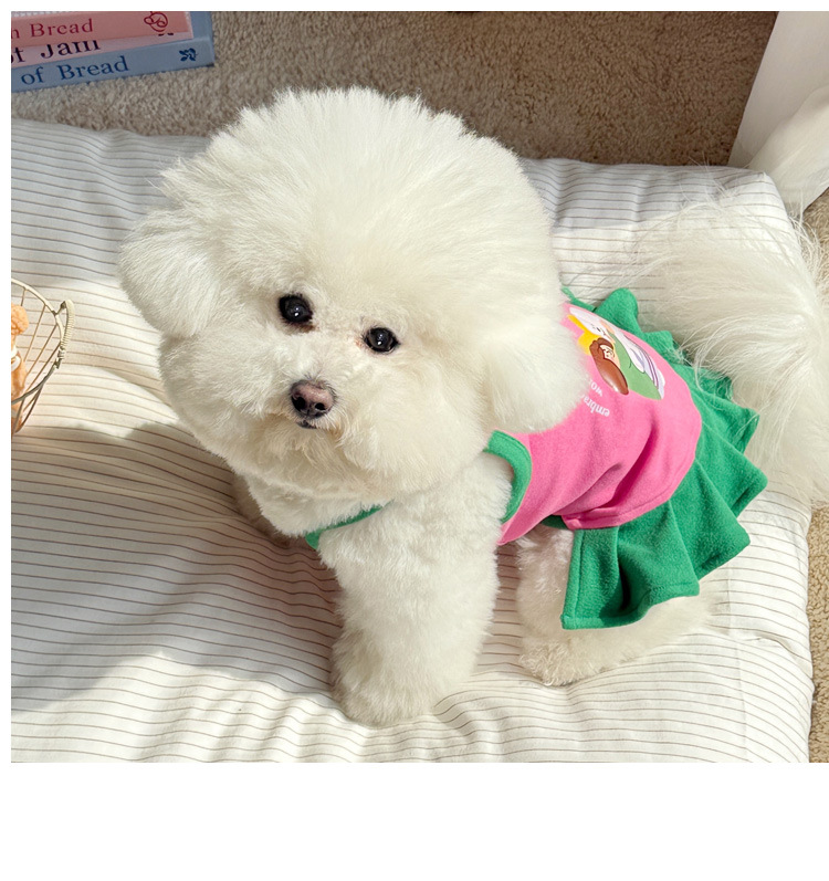 일본과 한국 스타일의 귀여운 애완 동물 개 고양이 옷 봄과 가을 폭발 부드러운 귀여운 슬리밍 베이스 싱글 착용스토어 가기