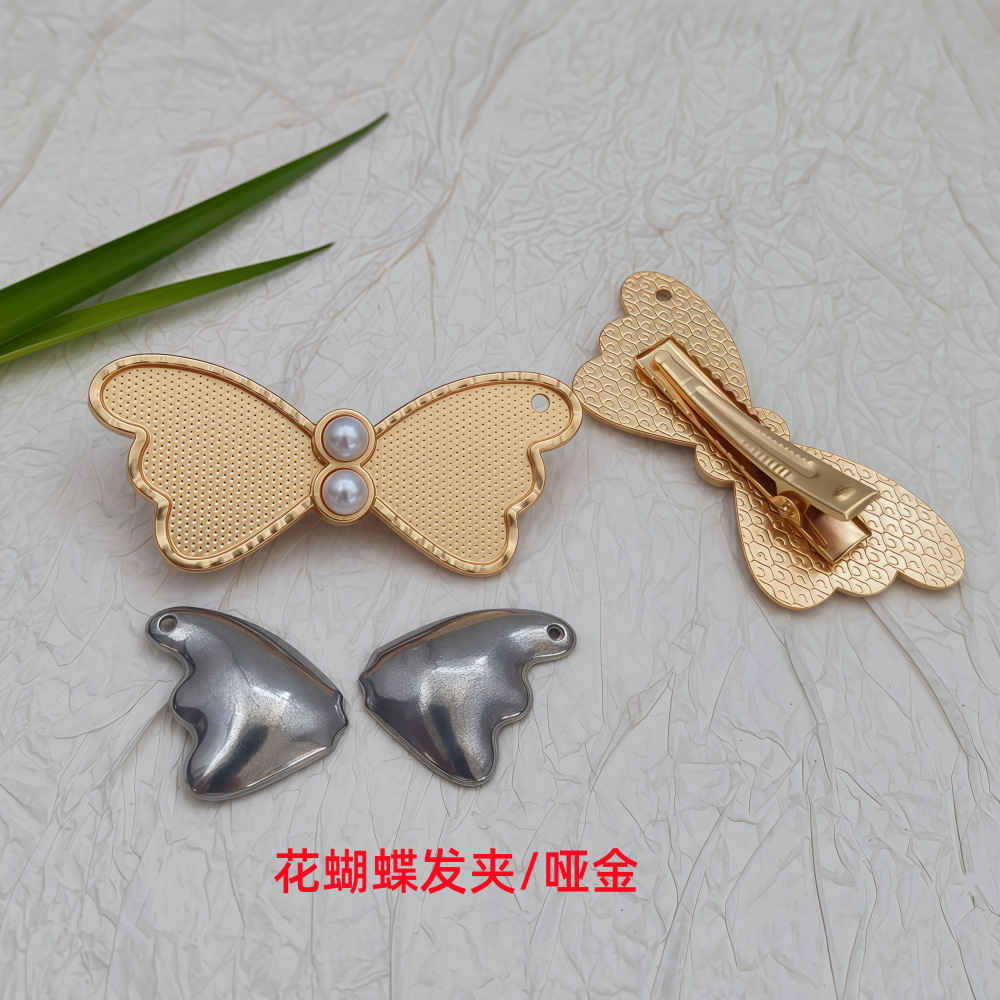 • 나비 리본 머리핀/무광 골드 [뚜껑 포함]