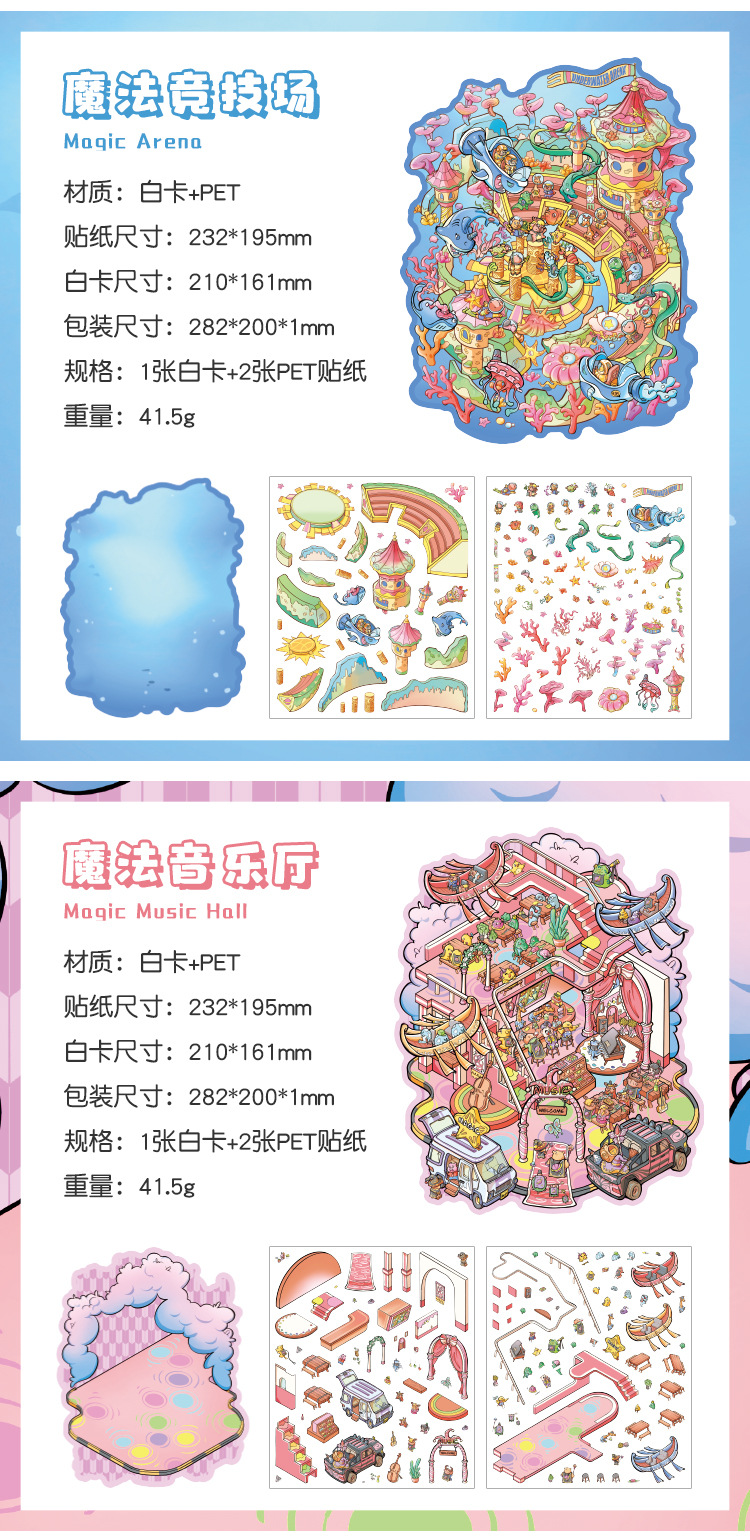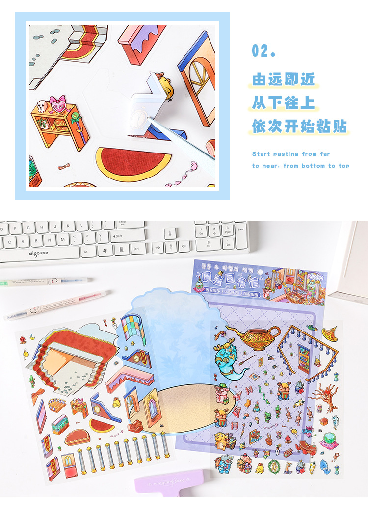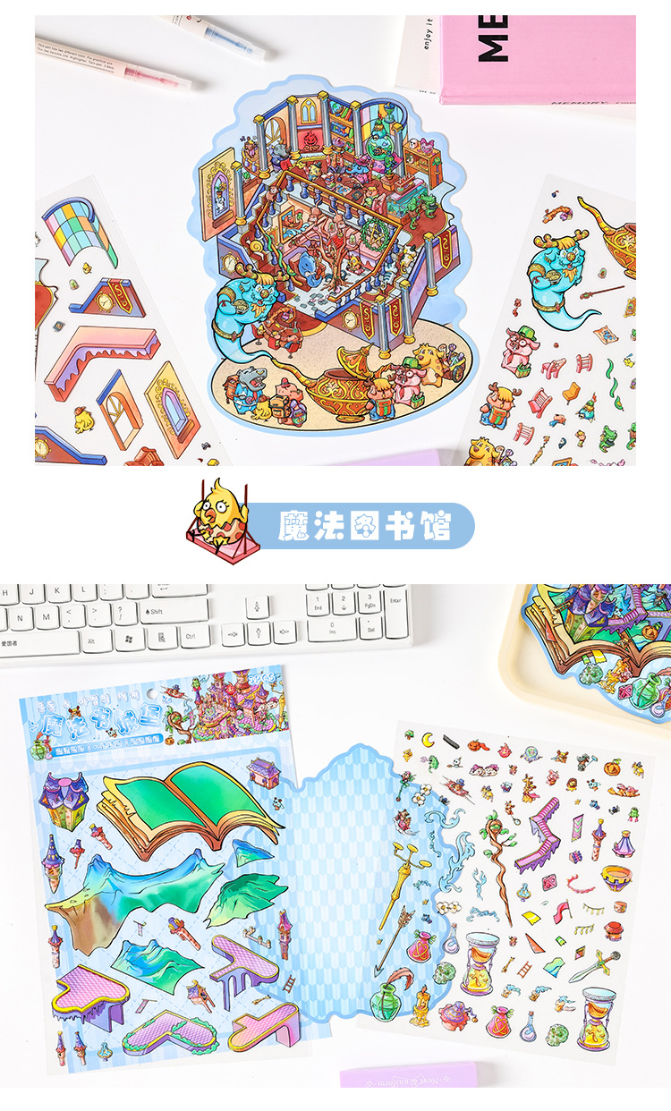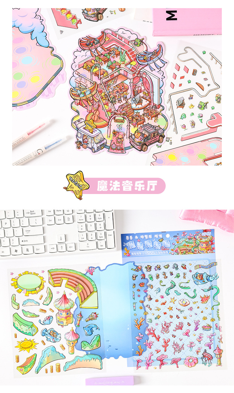 Yuezhen 마술 세계 창조적 인 스티커 스테레오 스티커 국경 스티커 3d 스테레오 스티커 큰 풍경 스티커