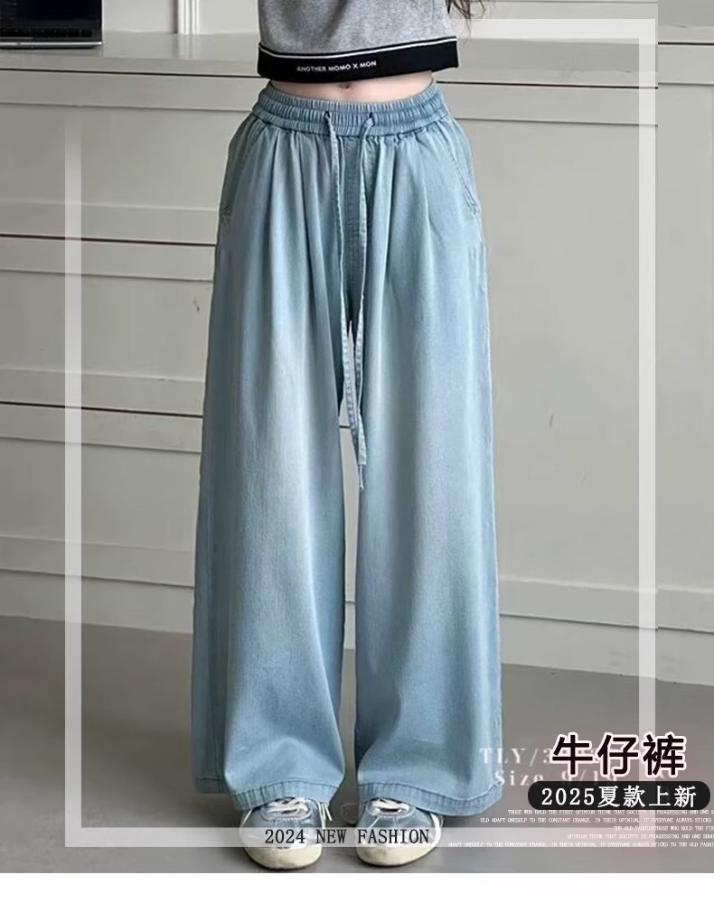 대외 무역 소녀 청바지 여름 2025 새로운 텐셀 면 스트레이트 다리 바지 대형 어린이 얇은 넓은 다리 바지 도매스토어 가기
