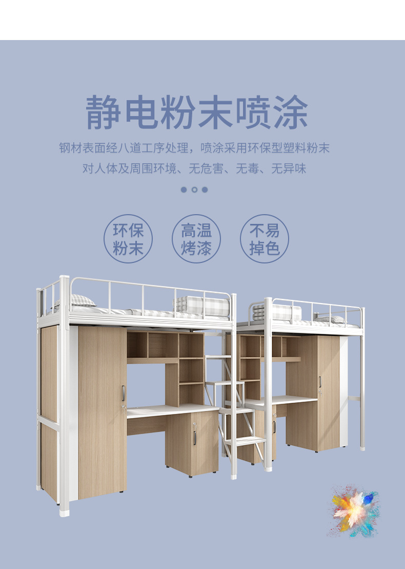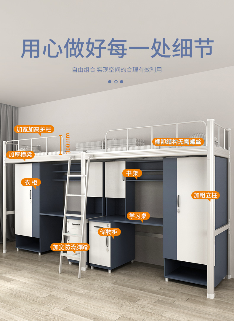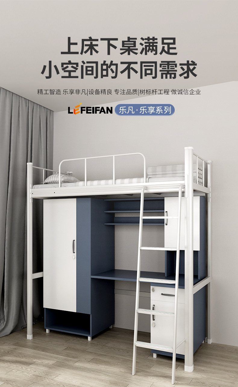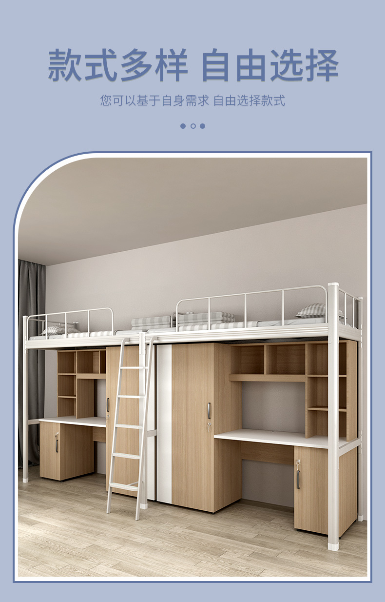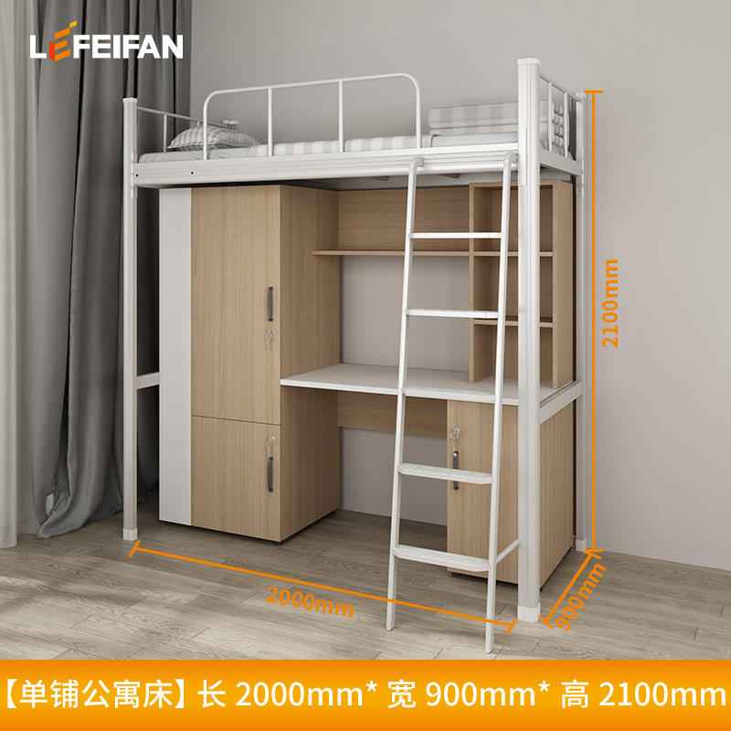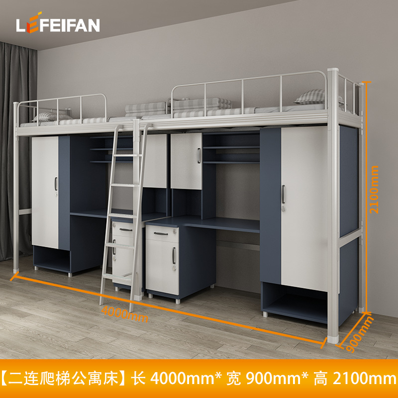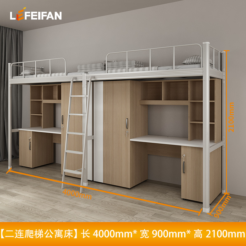 침대와 테이블이 결합된 아파트 침대, 대학 기숙사 이층 침대, 바닥 사다리, 철제 및 목재 결합 이층 침대