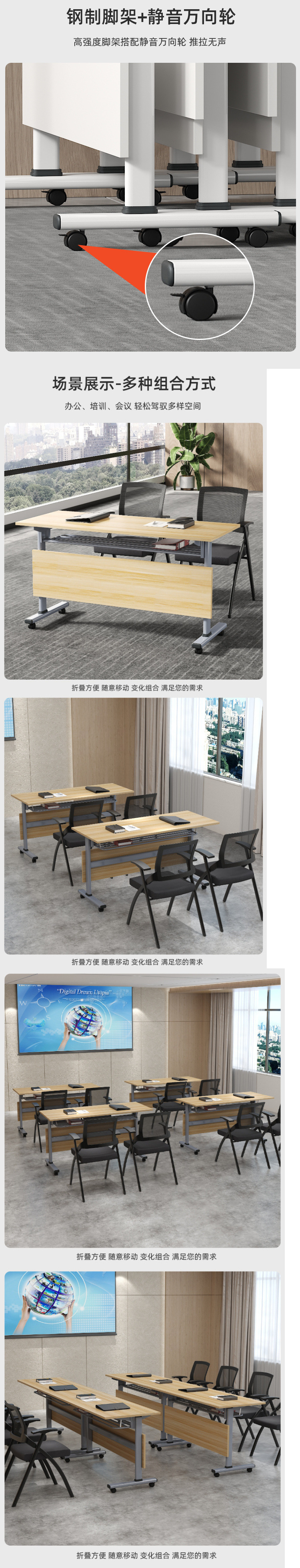 훈련 테이블과 의자 조합 긴 접합 테이블 다기능 학습 책상 접이식 모바일 책상 회의 테이블스토어 가기
