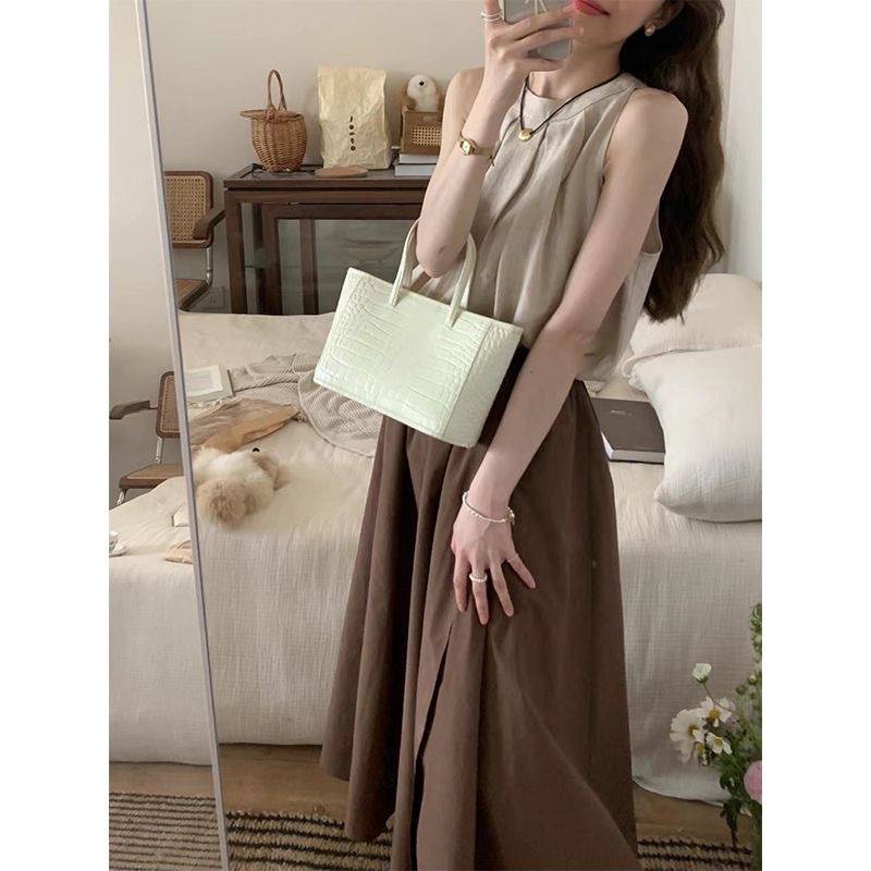여름 도파민 의상, 작은 사람들을 위한 차 스타일의 소금 스타일의 가볍고 성숙한 드레스, 여성용 작은 향기 슈트 세트스토어 가기