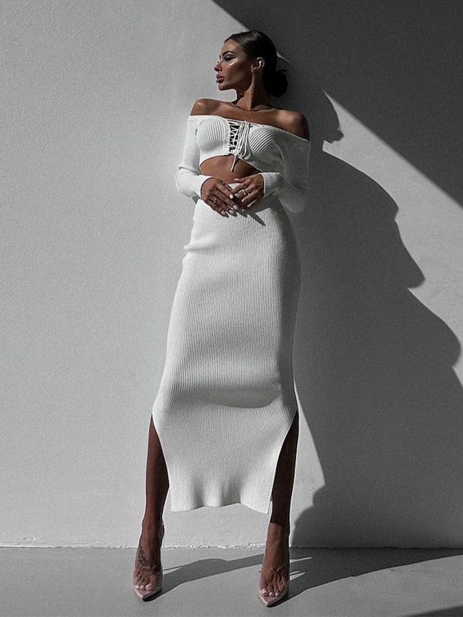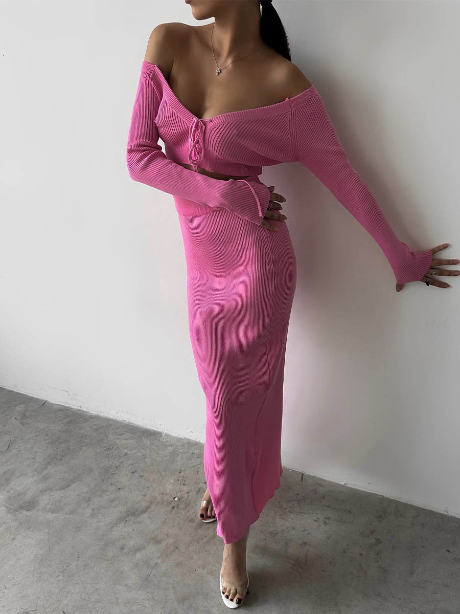 2025 가을 겨울 인기 유럽 및 미국 해외 여성복 섹시 긴팔 스웨터 드레스 투피스 세트 타이트 니트 스팽글 장식