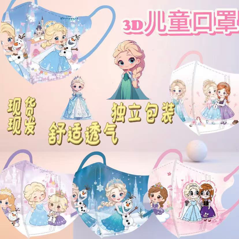 3~12세 어린이용 3D 입체 마스크 개별 포장 귀여운 만화 여아 Q 버전 엘사 학교용스토어 가기