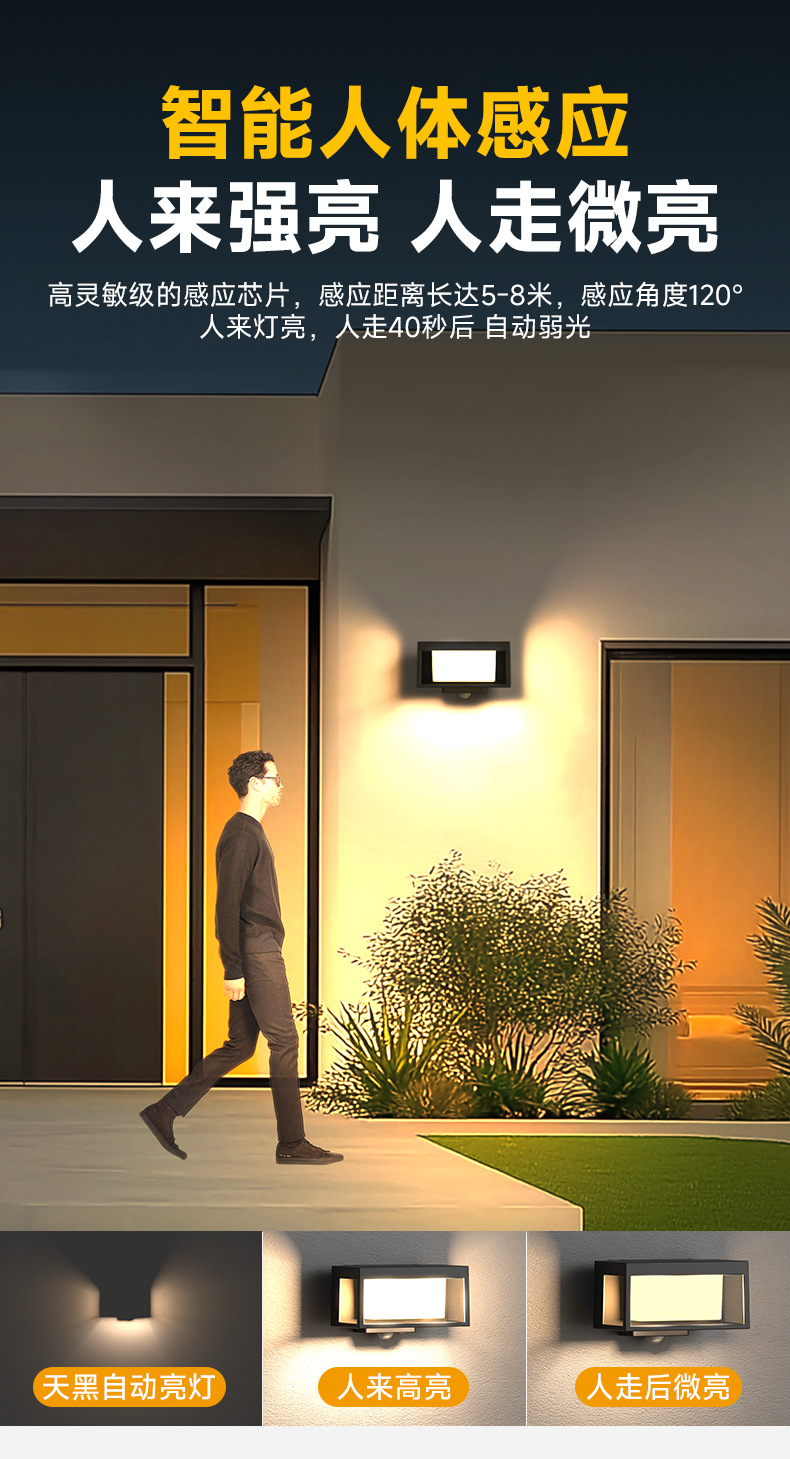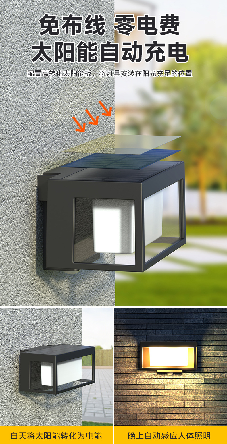 2025 새로운 태양 벽 램프 유도 정원 램프 야외 벽 램프 LED 벽 풍경 정원 빌라스토어 가기