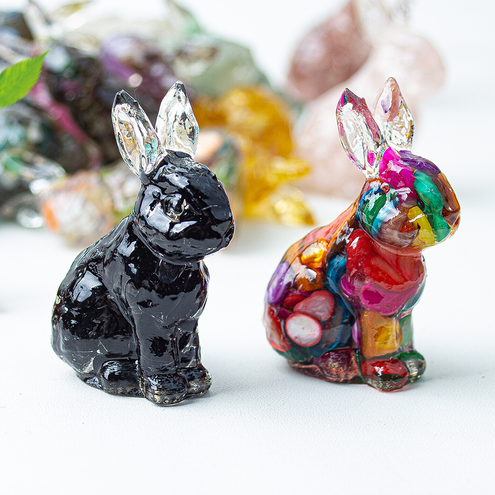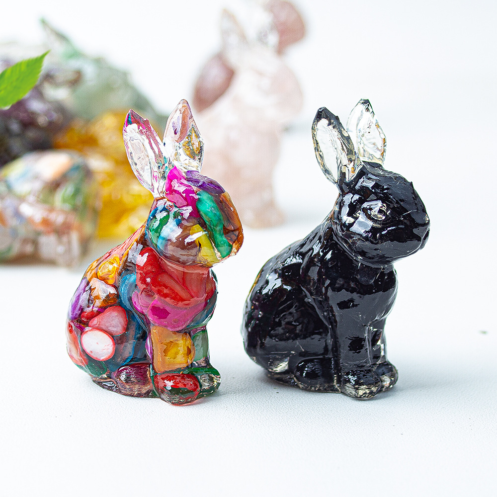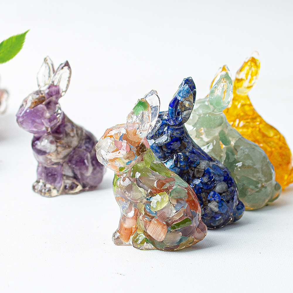 [징옥 스탠딩 토끼 장식품] 수지와 천연 크리스탈 귀여운 스탠딩 토끼 장식 라이트 럭셔리 데스크탑 아트웍스토어 가기