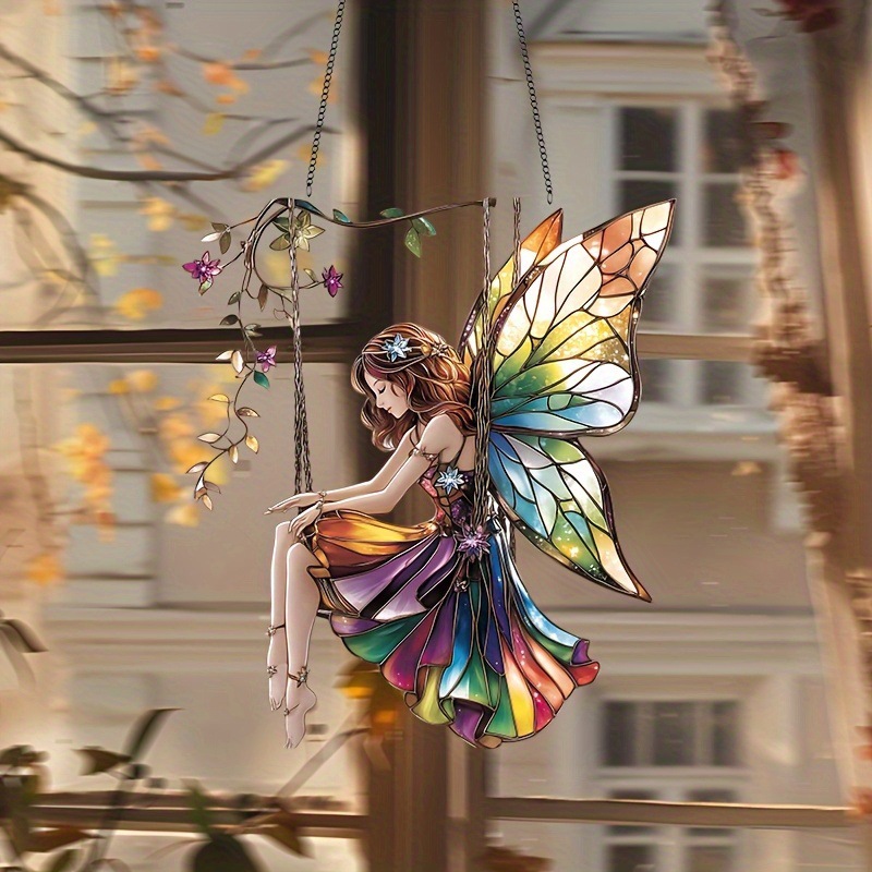 2D 평면, 요정 그네 아크릴 빛 포수 - 7.1inch x 8inch 컬러 윈도우 서스펜션스토어 가기