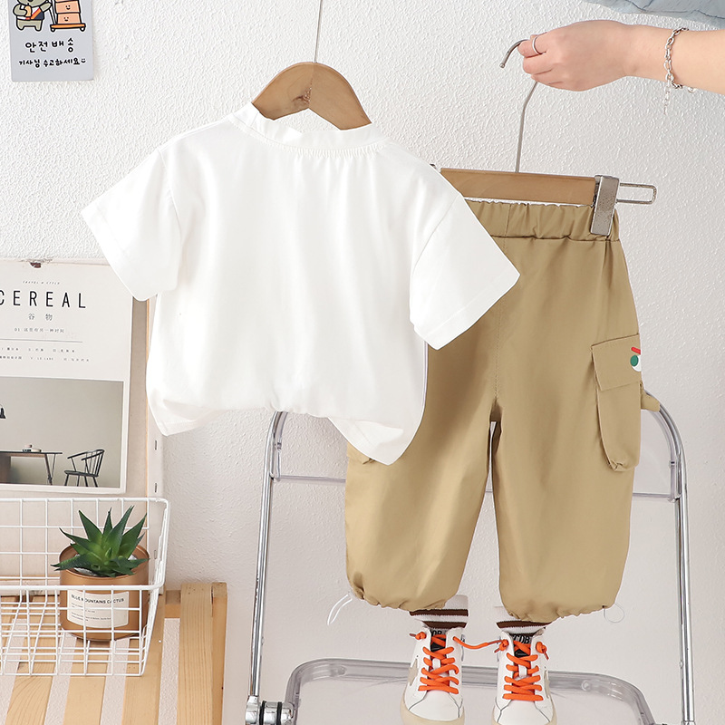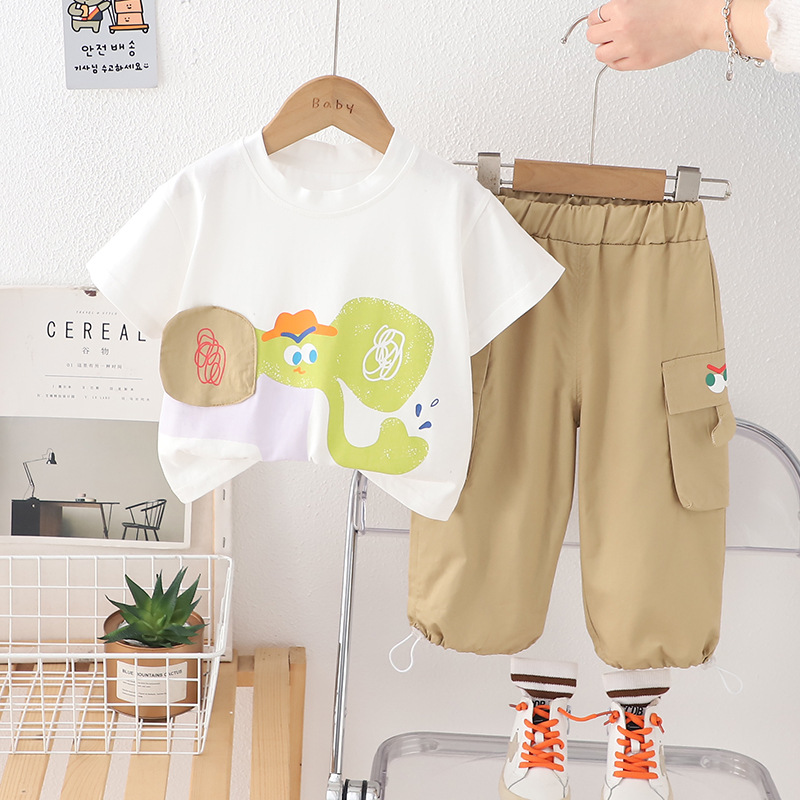 2025 새로운 만화 라운드 넥 캐주얼 재킷 얇은 바지 만화 귀여운 어린이 2 피스 도매 대외 무역