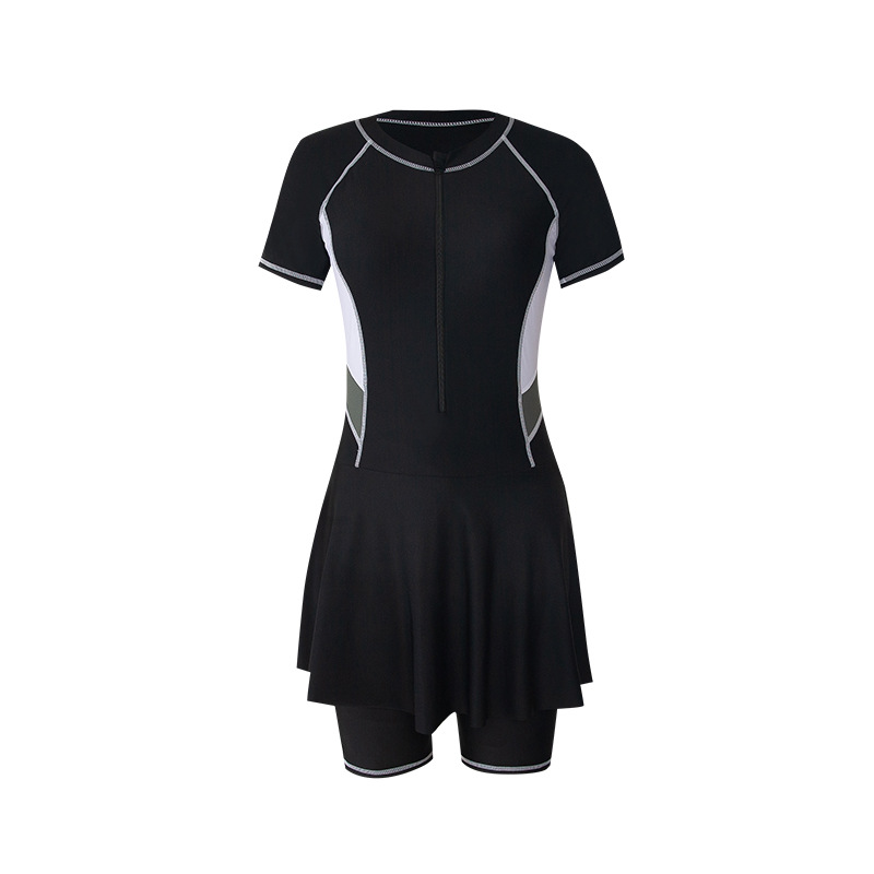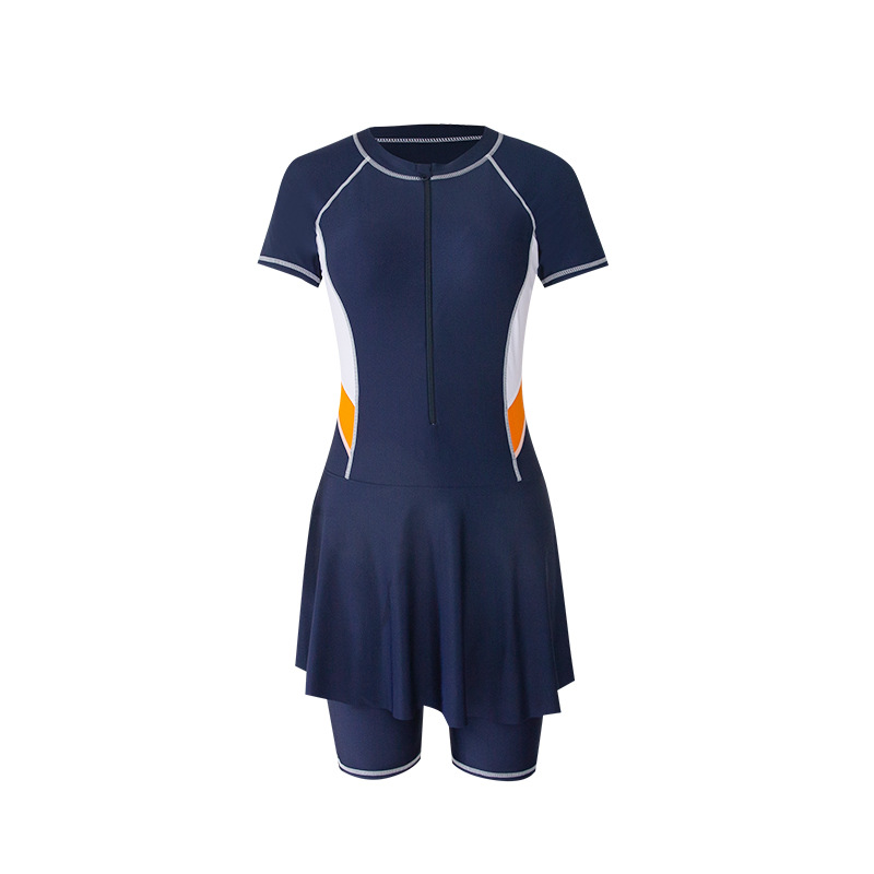여성용 수영복, 반팔 원피스, 사각 팬티, 배 커버, 슬리밍, 보수적인 스포츠 수영복, 지퍼, 가슴 패드, 온천 수영복
