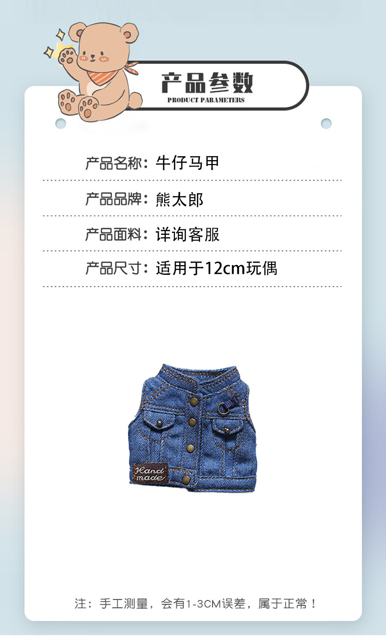 [옷만] 조인트 베어 펜던트 하체 키 체인 인형 데님 조끼 테디 베어 세트 조끼스토어 가기
