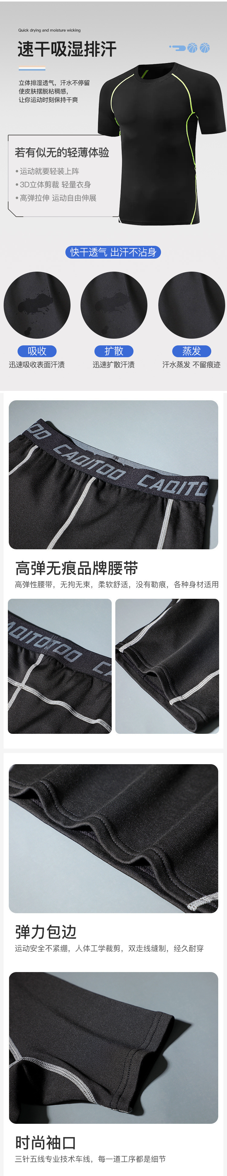 • 속건성과 통기성 - [블랙과 그린 투피스 세트] 기본 스타일