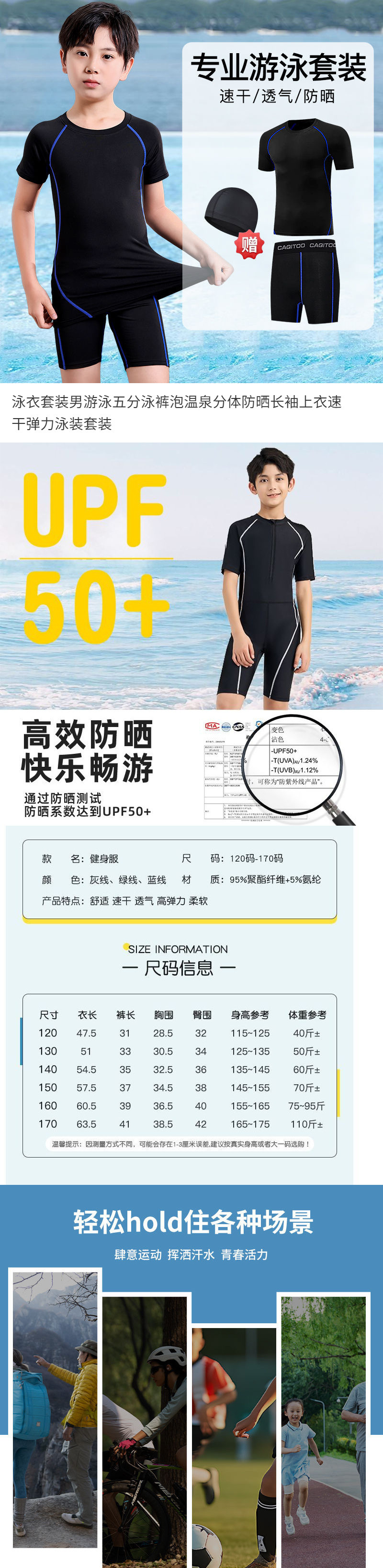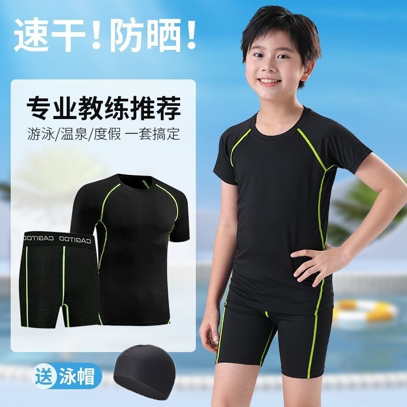 남아용, 중대형 아동용 수영복, 아동 및 청소년 수영 트렁크, 전문 스플릿 자외선 차단제, 속건성, 학생용 플러스 사이즈