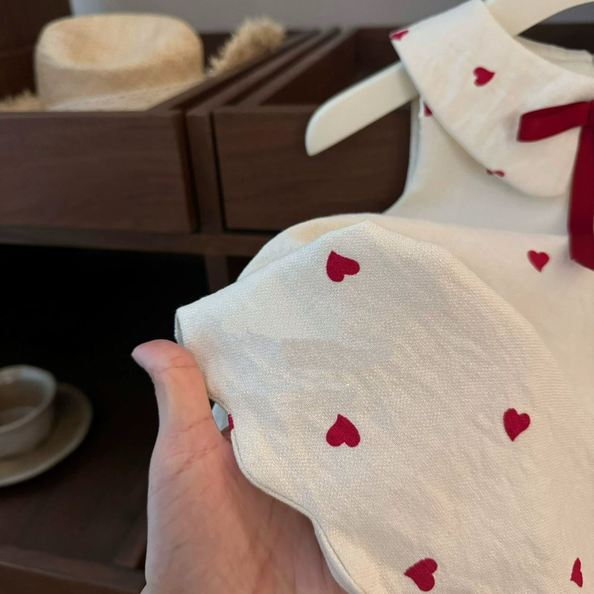跨境外贸女童夏季甜美爱心连衣裙2025新款女宝宝韩系薄款可爱娃娃