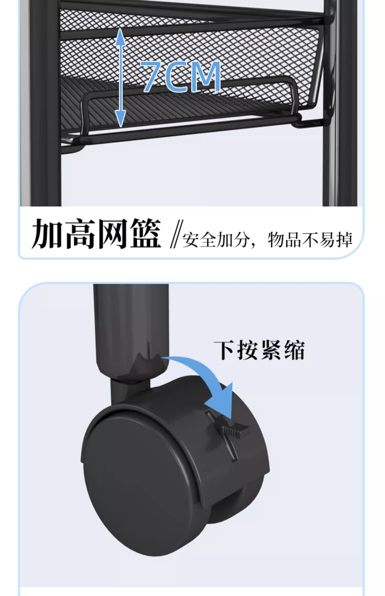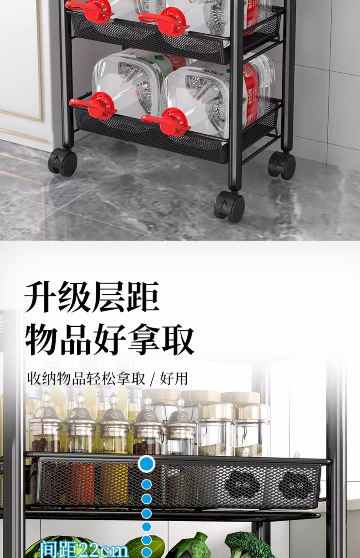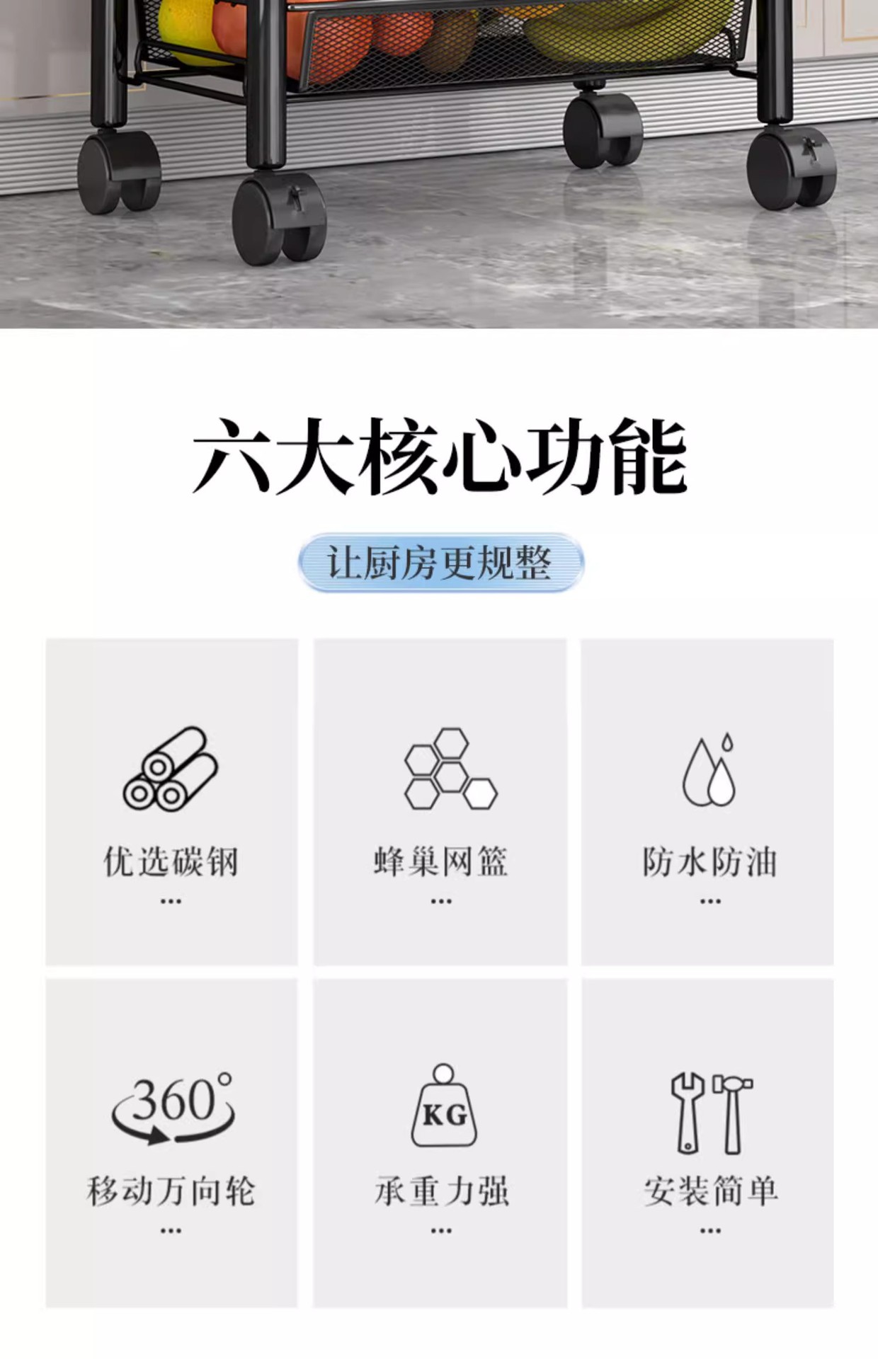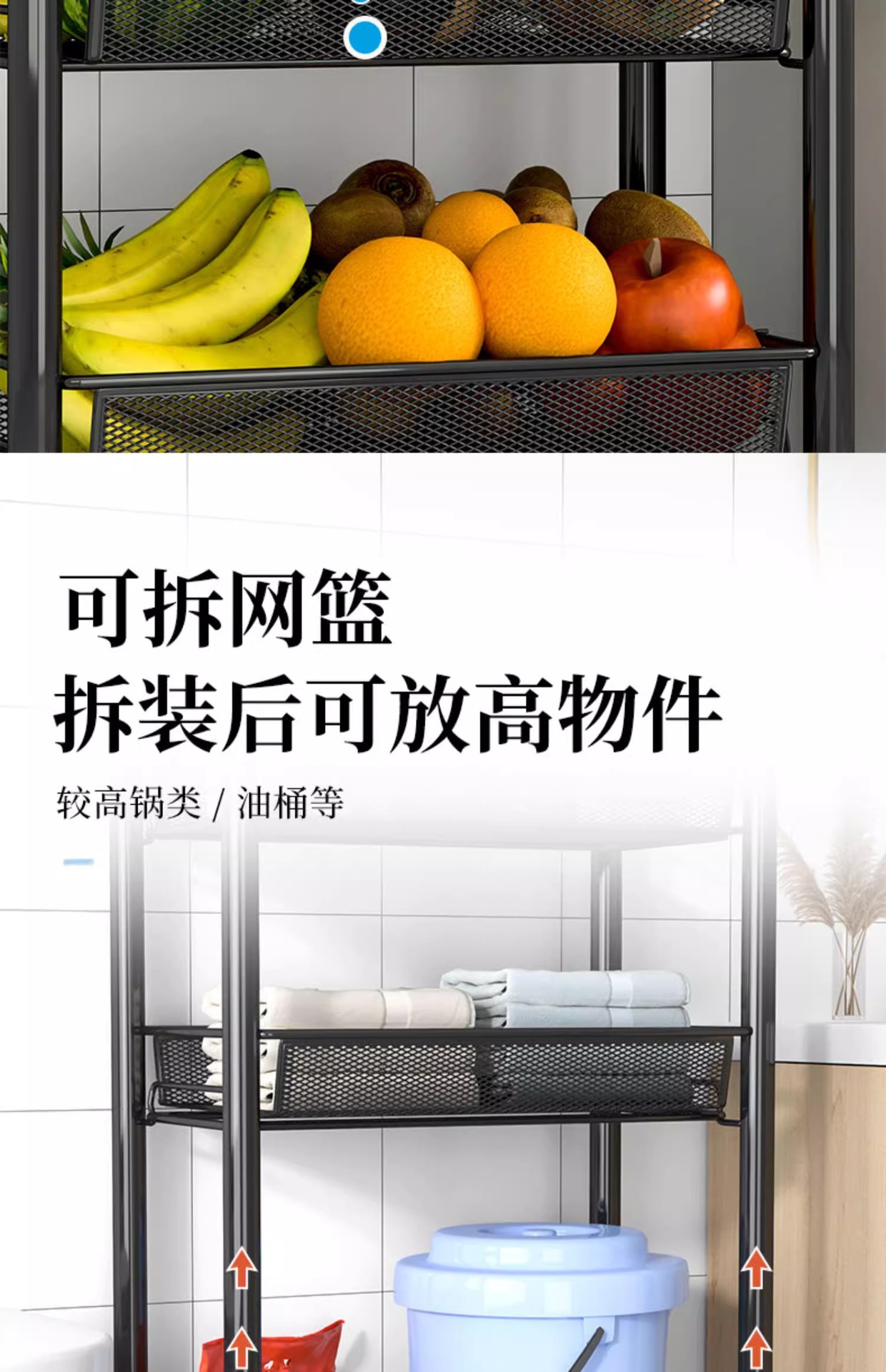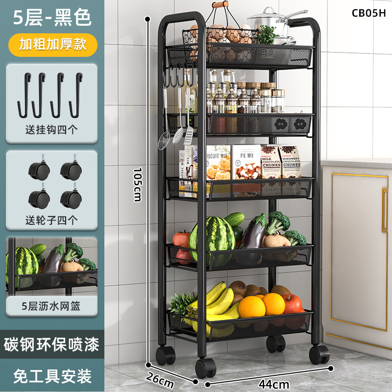 탄소 강철 주방 저장 랙 바닥 서 다층 이동식 트롤리 과일 및 야채 바구니 저장 랙 가정용 용품