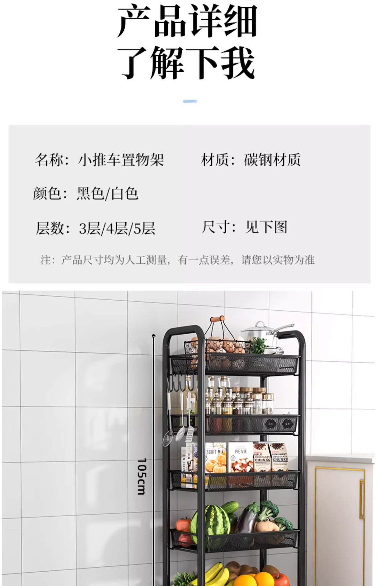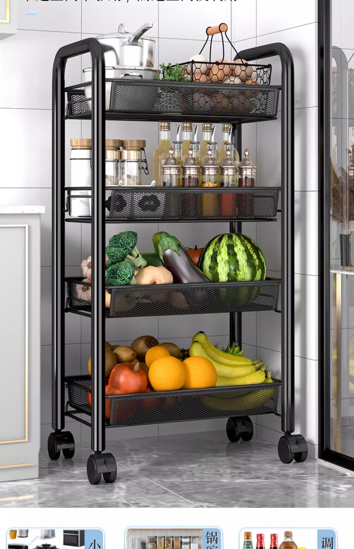 탄소 강철 주방 저장 랙 바닥 서 다층 이동식 트롤리 과일 및 야채 바구니 저장 랙 가정용 용품스토어 가기