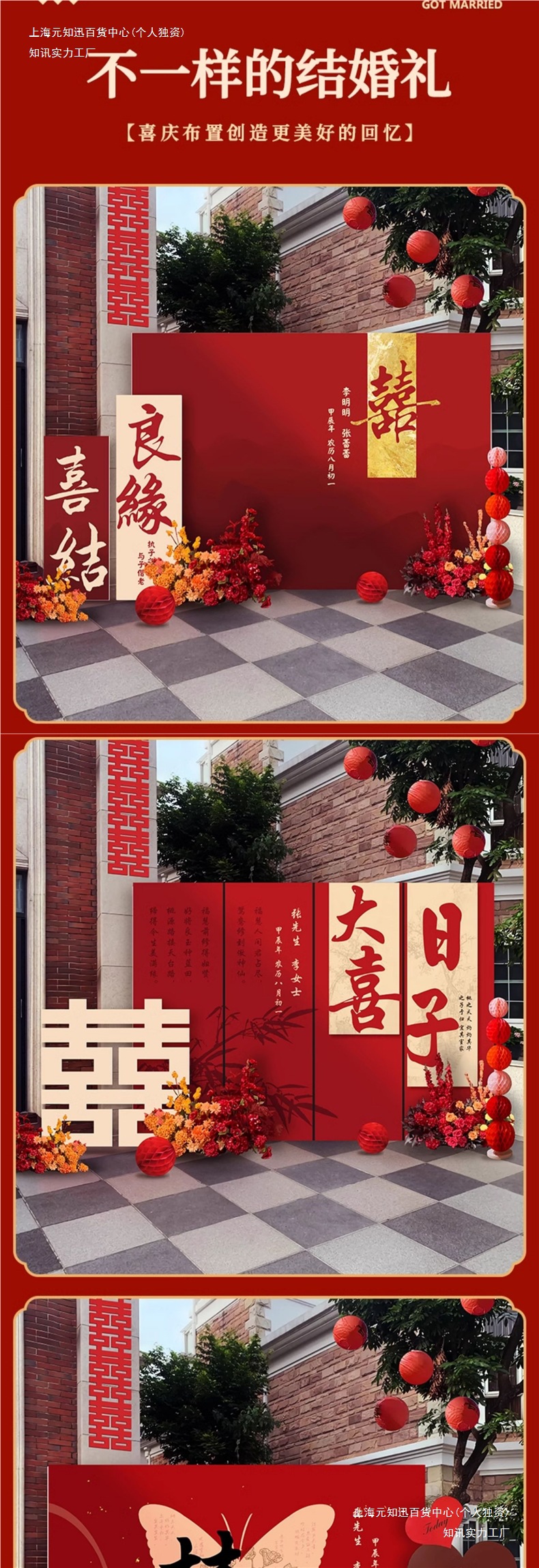 장식 장면과 야외 생산 웨딩 룸 레이아웃 세트 안뜰 배경 벽 패널 의식 세트 결혼식 단어 시골스토어 가기