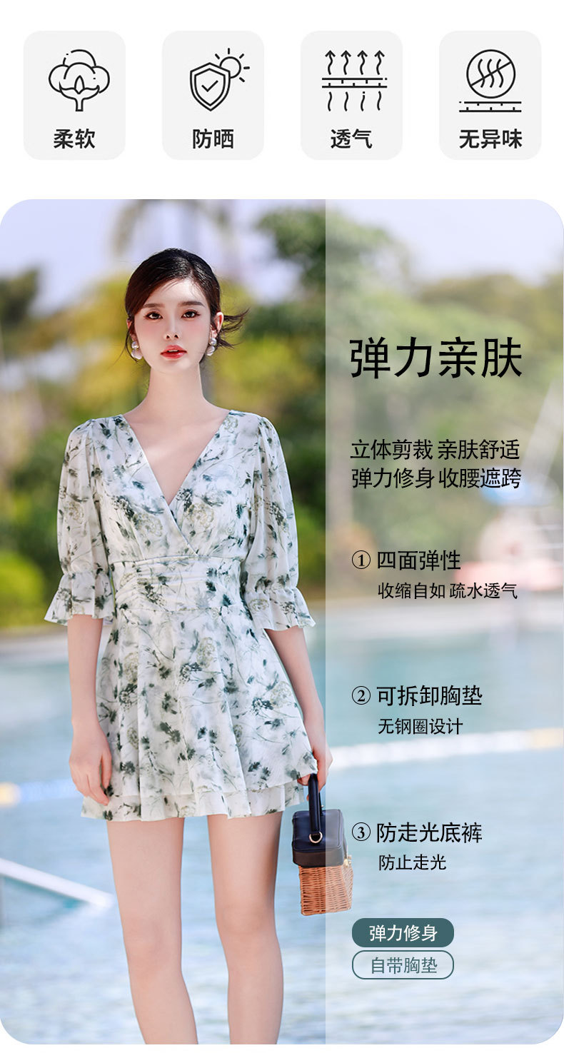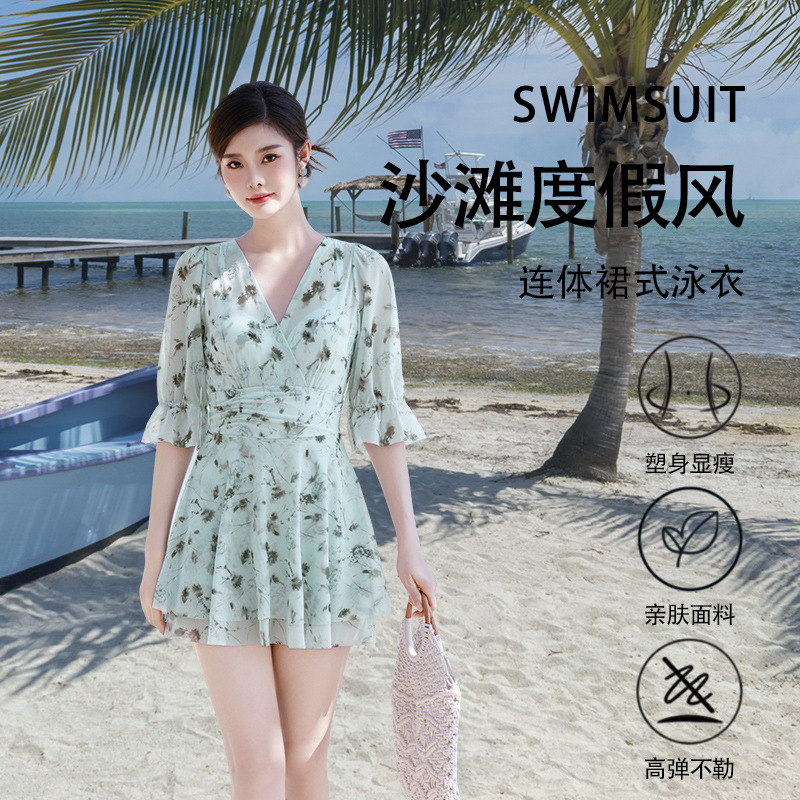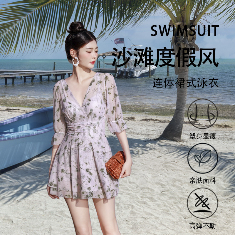 여성을 위한 새로운 고급 원피스 스커트 수영복, 작은 꽃무늬, 보수적이고 슬림한 해변 해변 캐주얼 야외 수영복스토어 가기