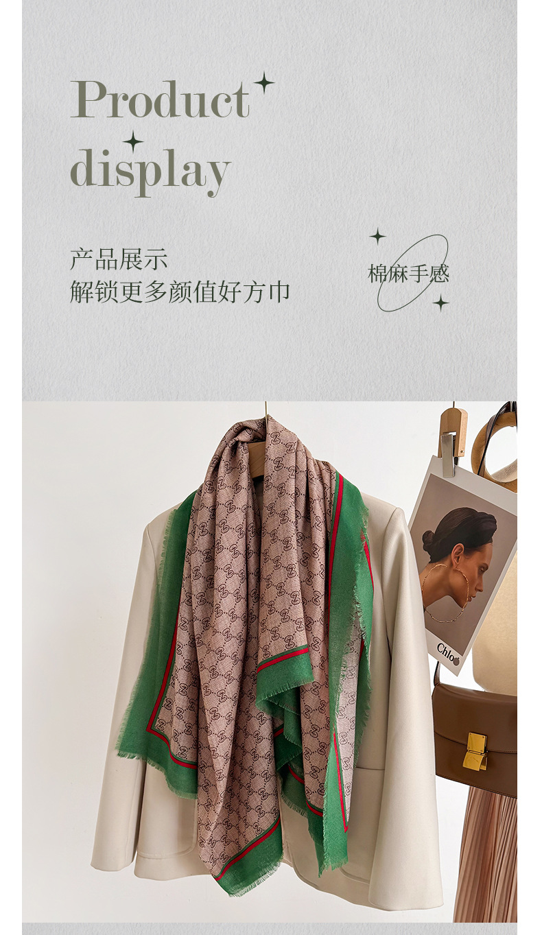 여름 디자인 문자 인쇄 사각형 스카프 복고풍 틈새 얇은 목도리 여성 의류 매칭 코튼 린넨 느낌 실크 스카프
