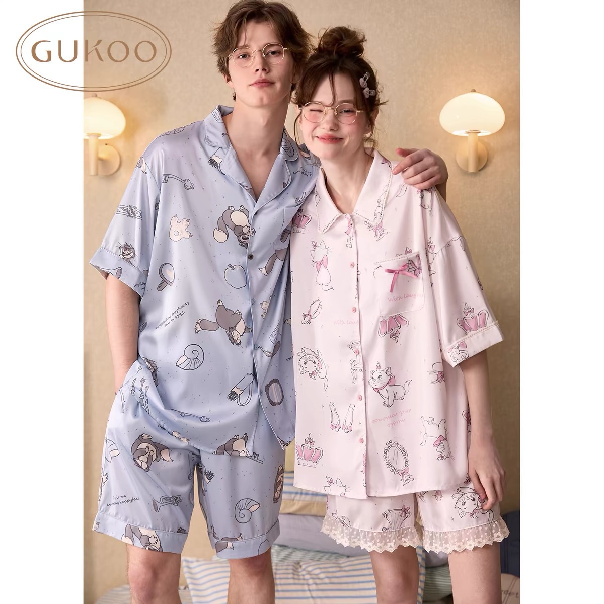 과일 쉘 같은 스타일 커플 잠옷 메리 고양이 여름 여성의 2025 새로운 스타일 쿨 짧은 소매 남성 홈 의류 세트